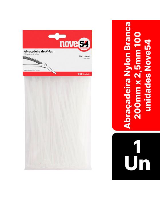 Abracadeira Nylon Branca 200mm X 2,5mm C/100 Nove54