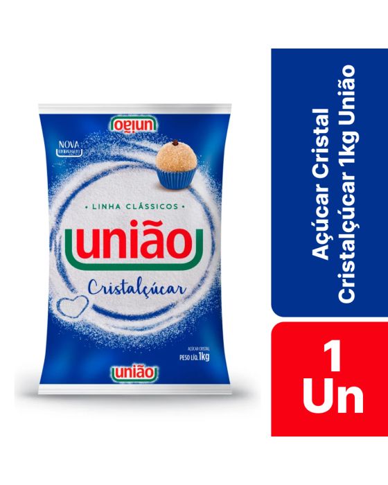 Características:Tenha em mãos o poder de adoçar o cotidiano.Em grãos uniformes e transparentes, nosso Cristal é uma verdadeira joia na sua cozinha. O melhor amigo no preparo dos bolos e docinhos ou a companhia ideal para adoçar líquidos.Detalhes:- Marca: União;- Linha: Açúcar;- Tipo: Cristal;- Cor: Branco;- Peso: 1kg;- Contém: 1 unidade do produto;- Grãos uniformes e transparentes;- Pode ser usado para adoçar bebidas, preparo de sobremesas e confeitos de doces.Conservação:- Mantenha o produto fechado em local seco e arejado e protegido da umidade e do sol, longe de produtos químicos e/ou odores fortes.Composição:- Sacarose de cana de açúcar.Medidas:- Dimensões da embalagem: 22,1 x 14 x 3,5cm (CxLxA);- Peso: 1kg.ALÉRGICOS: NÃO CONTÉM GLÚTEN.* As especificações podem ser alteradas sem aviso prévio ** Imagem meramente ilustrativa.