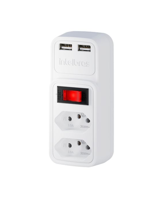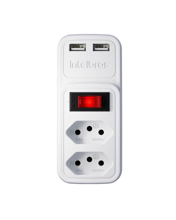 Adaptador Eletrico Branco 2 Tomadas 2 Usb - Eac 202 Intelbras
