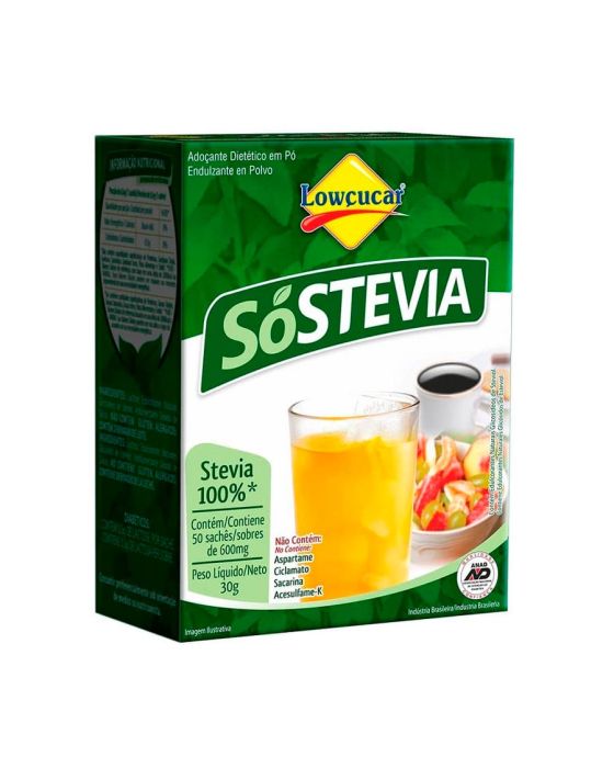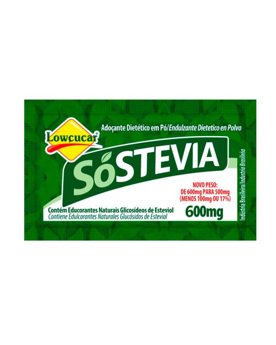 Características:O Adoçante Lowçucar SóStevia Sachê 0,6g é composto pelo edulcotante natural extraído das folhas da Stevia rebaudiana bertoni, conhecida como Stevia.Indicado a todos que precisam restringir ou substituir o açúcar por uma opção saudável, natural e menos calórica. Sua formulação foi desenvolvida especialmente para quem aprecia o que a natureza oferece.Detalhes:- Marca: Lowçucar.- Tipo: Dietico Stevia.- Linha: Adoçante Sachê.- Peso Líquido: 600mg.- Quantidade por caixa: 50 sachês.- Aprovado pela ANAD: Indicado para todos, inclusive gestantes e diabéticos.- Diabéticos: Contém 0,5g de Lactose/sachê.Apenas 2kcal/sachê.Quem pode usar:É um adoçante dietético em pó que serve para todas as pessoas de qualquer idade, principalmente para aqueles que necessitam de dietas especiais.Modo de usar: - Cada sachê equivale a duas colheres (chá) de açúcar.Ingredientes:- Ingredientes: Lactose. Edulcorantes Naturais Glicosídeos de Steviol. Antiumectante Dióxido de Silício.ALÉRGICOS: CONTÉM DERIVADOS DE LEITE. NÃO CONTÉM GLÚTEN.* As especificações podem ser alteradas sem aviso prévio ** Imagem meramente ilustrativa