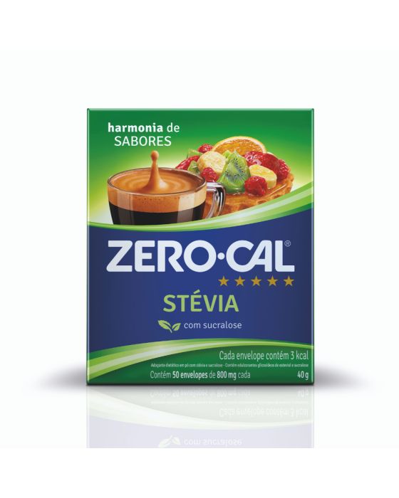 Caracteristicas:O adoçante Zero-Cal Stévia é de origem natural e feito a partir da planta Stévia Rebaudiana. Em uma fórmula saborosa traz um sabor mais doce ao produto e zero caloria.Traz a combinação perfeita das substâncias: Stévia e Scralose. Ideal para quem buscar ter uma vida mais saudável, sem abrir mão do sabor.Sua fórmula exclusiva pode ser utilizada para adoçar todos os tipos de alimentos, preservando o sabor suavemente doce. - Embalagem com 50 sachês - Sachês de 800mg cada* As especificações podem ser alteradas sem aviso prévio ** Imagem meramente ilustrativa.