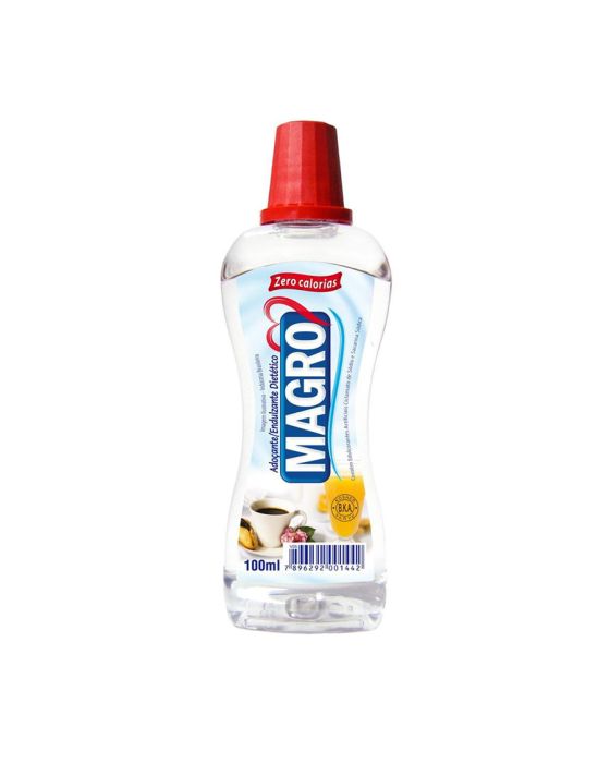 Caracteristicas:O Adoçante Líquido Magro Tradicional 100ml é indicado a todos que precisam restringir ou substituir o açúcar.Detalhes:- Marca: Magro.- Tipo: Tradicional.- Linha: Adoçante Sacarina.- Peso Líquido: 100ml- ZERO CALORIAS.- O Adoçante Líquido Magro Tradicional 100ml é indicado a todos que precisam restringir ou substituir o açúcar.- Produzido com o mais alto padrão tecnológico, o Adoçante Dietético Magro proporciona sabor e qualidade.Modo de usar:- O Adoçante Líquido Magro Tradicional 100ml é indicado a todos que precisam restringir ou substituir o açúcar.Ingredientes: Água, Edulcorantes Artificiais Sacarina Sódica e Ciclamato de Sódio e Conservante Benzoato de Sódio.* As especificações podem ser alteradas sem aviso prévio ** Imagem meramente ilustrativa.