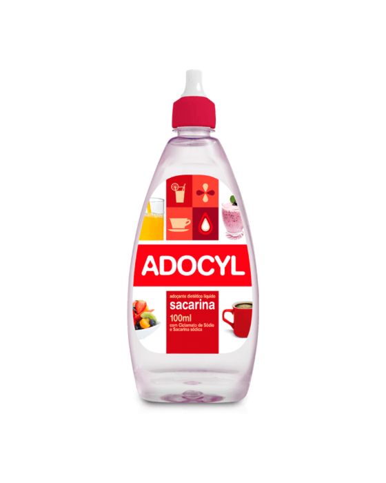 Caracteristicas:Adocyl foi criado para para aqueles que desejam deixar as refeições mais leves e saudáveis.Informação Nutricional - Valor Energético: Cada 4 gotas contém 0 kcal e equivalem ao poder adoçante de 1 colher (de chá) de açúcar. - Ingredientes: Água, sorbitol, edulcorantes: sacarina sódica e ciclamato de sódio, e conservadores: Ácido benzóico e metilparabeno. - ALÉRGICOS: PODE CONTER LEITE E SOJA. - Não Contém Glutem* Valores Diários de Referência em base numa dieta de 2000 calorias.** As especificações podem ser alteradas sem aviso prévio.*** Imagem meramente ilustrativa.