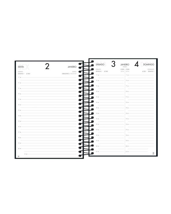 Características:Planeje seus compromissos com a agenda executiva espiralada Napoli da Tilibra. O produto tem tamanho 12,9 x 18,7 cm, capa dura revestida com material especial para oferecer visual sofisticado, bolsa plástica, folhas com visão de um dia por página, exceto aos sábados e domingos, picote com função de marcador de página e pautas com horário entre 7h e 21h. Esta agenda 2025, que possui 176 folhas, é a escolha certa para manter a rotina sempre em ordem.Detalhes:- Marca: Tilibra;- Modelo: Napoli;- Referência: 130095;- Linha: Planners e Agendas;- Ano: 2025;- Tipo: Espiral;- Capa: Capa Dura com laminação fosca e detalhe texturizado;- Contra capa: Contra capa simples;- Quantidade de folhas: 176 folhas;- Contém: 1 unidade do produto com 176 folhas;- Formato: 129 x 187mm (12,9 x 18,7cm);- Gramatura: 63g/m2;- Espiral: Preta;- Folhas: pautadas preta decorada;- Cor das folhas: Branca;- Visão: Diária, exceto sábado e domingo;- Possui bolsa plástica para guardar documentos e arquivos impressos;- Índice simples;- Planejamento mensal;- Detalhe para destaque em cada folha;- Produto certificado: FSC.Indústria Brasileira.Páginas:- 1 páginas para dados pessoais;- 2 páginas de calendário (1 folha calendário 2025 e 1 folha calendário 2026);- 2 páginas com feriados internacionais 2025;- 1 Páginas de planejamento 2025;- 2 páginas para anotações;- 1 página para controle de cada mês;- 1 página de planejamento para cada mês;- Páginas correspondentes ao dia e mês com espaço para escrita;- 3 páginas para anotações;- 2 páginas quadriculadas.Composição:- Capa: Fabricado em papelão e material sintético;- Folhas Internas: Papel Offset 63g/m2.Medidas:- Dimensões do produto: 129 x 187mm (12,9 x 18,7cm);- Gramatura: 63g/m2.* As especificações podem ser alteradas sem aviso prévio ** Imagem meramente ilustrativa.