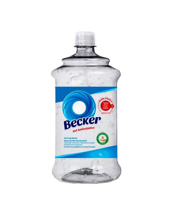 CaracterísticasGel Fresh Becker é um gel antisséptico com grande capacidade de limpeza que foi especialmente desenvolvido para higieninzação e desinfecção das mãos. Esse produto promove limpeza, higienização e desinfecção sem deixar as mãos ressecadas. O Gel Fresh Becker reduz 99,99% das bactérias. Possui eficácia comprovada frente à Salmonella choleraesuis, Staphylococcus aureus, Pseudomonas aeruginosas.- Conteúdo: 1L- Fragrância: NeutroEspecificações- Físicas - Aspecto: Gel - Cor: Incolor - pH: 6,0 - 7,0 - Viscosidade: 8.000 - 16.000 cPs- Químicas - Composição: Aqua, carbomer, alcohol 70%, propylene glycol, triethanolamine e denatonium benzonate.Campo de aplicação: Hospitais, clínicas, indústrias, hotéis, supermercados, restaurantes, condomínios, escolas, shoppings, etc.Finalidade: Limpeza, higienização e desinfecção das mãos.Modos de uso: Uma pequena quantidade do produto será suficiente para perfeita limpeza, higienização e desinfecção. Aplicar nas mãos e friccioná-las até que o produto seja totalmente absorvido pela pele. Não necessita enxaguar. Dispensa o uso de toalhas. Esse produto não substitui o sabonete e a lavagem com água.* As especificações podem ser alteradas sem aviso prévio** Imagem meramente ilustrativa