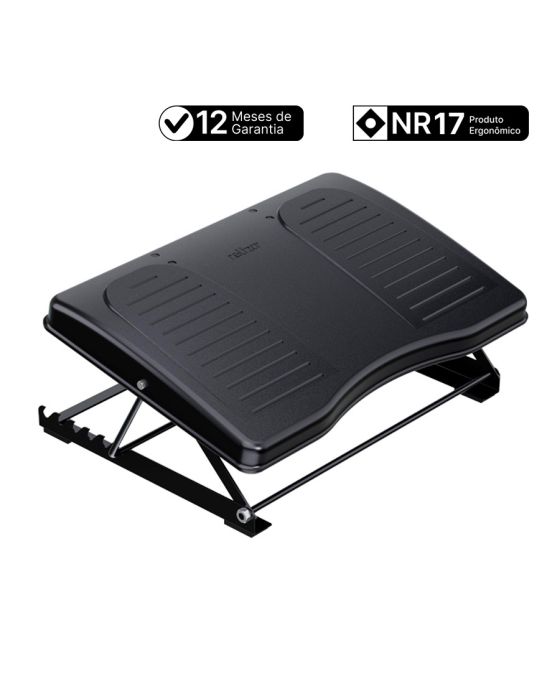 Características:O Apoio para Pés Shark PP corrige a postura do usuário, auxiliando em uma posição ergonômica mais saudável ao elevar os pés e reduzir a pressão principalmente na coluna cervical, pernas e lombar. Produto altamente resistente produzido em aço carbono e polipropileno, possui até 7 regulagens de altura.O uso contínuo desse produto melhora a circulação, prevenindo varizes, fadiga muscular e inchaço nas pernas. Beneficia a saúde do usuário proporcionando maior bem-estar, aumentando assim o conforto e produtividade.Detalhes:- Marca: Reliza;- Modelo: Shark PP;- Referência: 010644;- Linha: Apoio para pés;- Cor: Preto;- Contém: 1 unidade do produto;- Possui certificação NR17;- Com sapatas antiderrapantes;- Regula de 5,8cm até 24cm;- Possui mecanismo de gangorra sem trava para melhor ajuste.Composição:- Produzido em aço carbono e polipropileno.Medidas:- Dimensões do produto sem embalagem: 42,5 x 29 x 7,3cm (CxLxA);- Dimensões do produto com embalagem: 44 x 31,5 x 7,5cm (CxLxA);- Peso sem embalagem: 1,51kg;- Peso com embalagem: 1,69kg.*As especificações podem ser alteradas sem aviso prévio ** Imagem meramente ilustrativa.