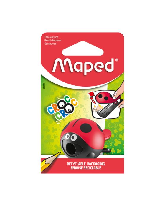 Caracteristicas:Apontador Maped Croc Easy em formato de joaninha. O apontador de lápis Croc Croc Easy foi projetado para se adaptar perfeitamente às habilidades motoras de crianças de 4 anos ou mais. Seu sistema de pinças é simples, eficiente e divertido! Um design bonito: quem não se apaixonaria por esta joaninha bonita? Com ele, as crianças aprendem enquanto se divertem. Afiar o lápis e esvaziar a reserva é realmente uma brincadeira de criança! Cabe perfeitamente nas mãos das crianças, mas também em todos os kits escolares. Conveniente para levá-lo à escola sem sujar o estojo. Embalagem responsável: o apontador Maped é oferecido em embalagem 100% reciclável, para respeitar o nosso lindo planeta.- Fácil abertura- Diâmetro máximo do lápis: 8mm- Compacto e fácil de limpar- Corpo plástico 100% reciclável- Lâmina em aço* As especificações podem ser alteradas sem aviso prévio ** Imagem meramente ilustrativa