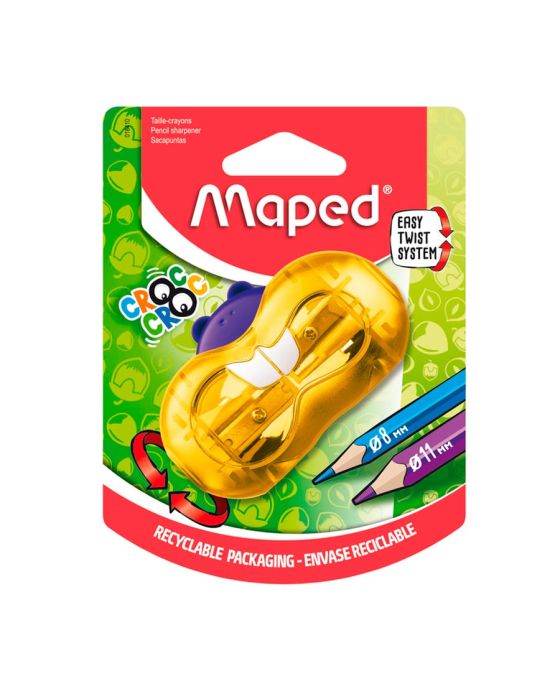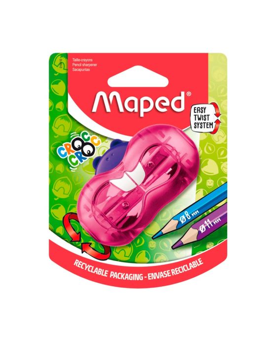 Caracteristicas:Quem não se apaixonaria por este pequeno hamster? Com o apontador de lápis Croc Croc Twist, as crianças podem aprender a apontar enquanto se divertem. Afiar o lápis fica super fácil e intuitivo! Graças ao seu sistema de catraca, o apontador de lápis Croc Croc Twist permite uma afiação rápida e fácil. Ele combina facilidade de uso e design bonito e torna a nitidez muito fácil para as crianças! Ideal para lápis de todas as crianças e para todas as suas atividades de colorir. Detalhes:- Marca: Maped.- Modelo: Croc Croc Esquilo Twist.- Referência: 018410.- Linha: Apontador.- Cores: Verde com Roxo, Rosa com Roxo e Amarelo com Roxo (Cores sortidas).- Furos: Possui 2 furos.- Contém: 1 blister com 1 unidade do produto.- Indicado para Lápis: de 8 a 11mm de Diâmetro.- Embalagem 100% Reciclável.- Combinação de facilidade de uso e design bonito.Validade indeterminada.Medidas:- Dimensões: 7 x 5 x 4cm (CxLxA).Composição:- Polistireno e Lâmina de aço.Cores sortidas, será enviado de acordo com a disponibilidade do estoque. Não é possível escolher uma cor específica.ATENÇÃO! NÃO RECOMENDADO PARA CRIANÇAS DE ATÉ 4(TRÊS) ANOS, POR CONTER PARTE(S) PEQUENA(S) QUE PODE(M) SER ENGOLIDA(S)OU ASPIRADA(S) E BORDA(S) CORTANTE(S) FUNCIONAL(IS). CRIANÇA ENRE 5 (CINCO) E 8 (OITO) ANOS SOMENTE DEVEM UTILIZAR SOB A SUPERVISÃO DE UM ADULTO..* As especificações podem ser alteradas sem aviso prévio ** Imagem meramente ilustrativa.