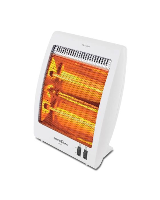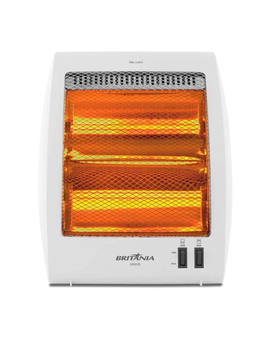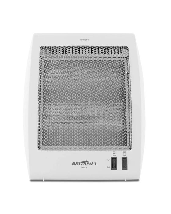 Características:Se prepare para os dias frios deixando sua casa quentinha e aconchegante com o Aquecedor Britânia AB800B. Ele tem 800W de potência e dois níveis de aquecimento. Possui alça para ser levado para qualquer ambiente e em caso de queda, ele desliga automaticamente. Deixe sua casa quentinha com o Aquecedor Britânia AB800B. Detalhes:- Marca: Britânia;- Modelo: AB800B;- Linha: Aquecedores;- Cor: Branco;- Tensão: 220V;- Aquecimento: Lâmpadas de Halogênio;- Contém: 1 unidade do produto;- Chave de proteção contra tombamento;- Dois níveis de potência;- Cordão elétrico com comprimento de 1,20M;- Proteção contra sobreaquecimento;- Cavidade para transporte;Energia:- Tensão: 220V;- Potência: 800W;- Consumo (kW/h): 8 kW/h.Composição: - Fabricado em Metal, Plástico e Vidro.Medidas:- Dimensões do produto: 13,5 x 29,5 x 36cm (CxLxA);- Dimensões da embalagem: 14,5 x 30 x 41cm (CxLxA);- Peso do produto: 1,2kg;- Peso da embalagem: 1,106kg.Conteúdo da embalagem: 1 Aquecedor Halógeno AB800B Britânia e 1 Manual de Instruções.Garantia do fornecedor: 1 ano contra defeitos de fabricação.* As especificações podem ser alteradas sem aviso prévio ** Imagem meramente ilustrativa.