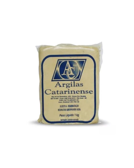 Características:Seja ara o dia a dia na escola, para fabricação de utensílios domésticos, modelagem de esculturas e aplicações artísticas, a argila catarinense é ideal e prática, além de ser um produto natural sem tratamento químicos!Detalhes:- Marca: Catarinense;- Linha: Argila;- Cor: Marrom;- Peso: 1kg;- Contém: 1 unidade do produto;- Embalagem plástica;- Excelente consistência e qualidade- Produto natural sem tratamentos químicos;- Vendido em unidade;- Não medicinal.Indústria Brasileira. | Validade: Indeterminada.Ideal para:- Ideal para aplicações artísticas, fabricação de itens como canecas, pratos e demais utensílios, além de poder ser usado para modelagem de esculturas, maquetes e ser usado para aprendizado em escolas.Recomendações:- Pode ser levada ao forno até 1200º;- Produto sujeito a desidratação, reidratar utilizando água.Composição:- Argila natural.Medidas:- Dimensões do produto: 13 x 13cm (CxL);- Peso: 1kg.* As especificações podem ser alteradas sem aviso prévio ** Imagem meramente ilustrativa. ilustrativa.