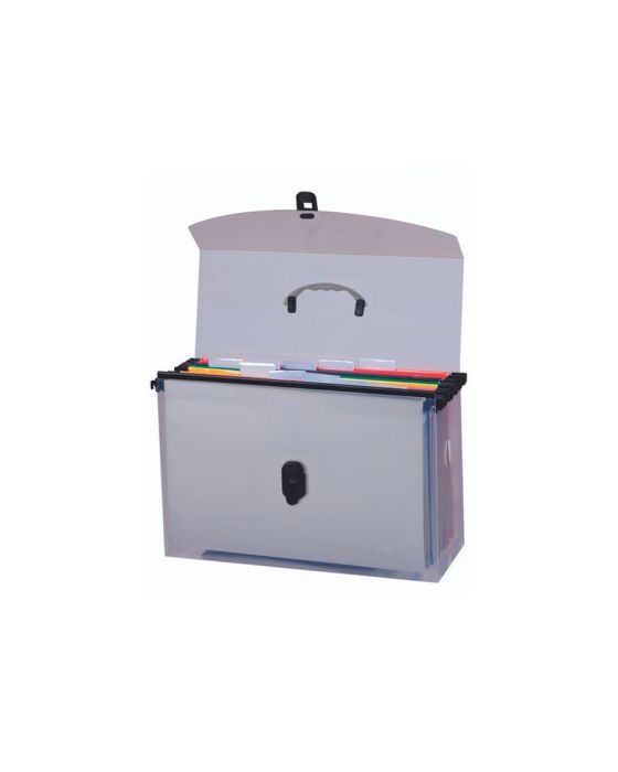 Características:Guarde seus documentos com a Maleta Arquivo DelloPlast Dello, possui 10 pastas suspensas coloridas permitindo categorizar os documentos pelas cores da maleta por demanda, prioridade, de acordo com a rotina!Detalhes:- Marca: Dello.- Modelo: 0319.H.- Linha: Maleta Arquivo.- Cor: Cristal.- Contém: 1 unidade do produto.- Acompanha: Acompanha grampo plástico, visor e etiqueta e 10 pastas suspensas coloridas.- Medidas: 39 x 14 x 26cm.- Peso: 1,274kg.- Espessura: 0,9.- Fechamento: Trava.Composição:- Maleta em polipropileno.* As especificações podem ser alteradas sem aviso prévio ** Imagem meramente ilustrativa