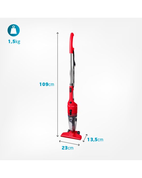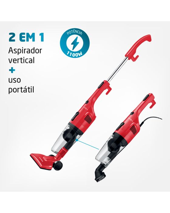 Características:Garanta mais poder de sucção com o Aspirador de Pó Turbo Cycle AP-36. A função 2 em 1 permite sua utilização no modo portátil ou vertical. Seus 1100W de potência, com motor superpotente, limpa mais rápido e com eficiência. O sistema de dupla filtragem Turbo Cycle é removível e lavável, além de ser ecológico. Além disso, tem coletor de pó translúcido com capacidade para 1,3 litros e cabo elétrico de 4 metros.Detalhes:- Marca: Mondial;- Modelo: Turbo Cycle;- Referência: AP-36;- Linha: Aspiradores de pó;- Cor: Vermelho/Preto;- Voltagem: 220V;- Capacidade do reservatório de pó: 1,3L;- Contém: 1 unidade do produto;- 2 em 1: Possui haste removível e pode ser utilizado como aspirador vertical ou portátil. Na versão portátil, ele é perfeito para limpeza de estofados, carros e teclados;- Filtro Lavável: O filtro Cyclone é removível e lavável, ou seja, é mais prático e fácil de limpar. Além disso, por não precisar de saco coletor, o aspirador é mais econômico e sustentável;- Sistema de Supla Filtragem: O Turbo Cycle (sistema de dupla filtragem) mantém os filtros limpos e desobstruídos, o que aumenta a capacidade de aspiração;- Potência de 1100W: Proporciona alta eficiência na sucção da sujeira, possibilitando uma limpeza mais rápida;- Coletor de pó translúcido: é fácil de limpar. Você consegue visualizar quando o coletor de pó está cheio;- Cabo elétrico com 4 metros: Alcança facilmente todos os cantos da sua casa;- Porta-Fio + Porta Acessórios: Mais praticidade na hora de guardar;Acessórios:- Acompanha 1 bocal multiuso, 1 bocal para cantos e frestas, e 1 bocal para estofados.Onde usar:- Para diferentes tipos de superfícies: piso frio, carpete, tapetes, carro, teclado e estofados.Energia:- Voltagem/Tensão: 220V;- Potência: 1100W.Medidas:- Dimensões do produto: 109 x 23 x 13,5cm ((AxLxP);- Peso: 1,5kg;- Comprimento do cabo: 4 metros.Garantia do fornecedor: 1 ano contra defeitos de fabricação.Conteúdo da embalagem: 01 Aspirador de Pó, 01 Bocal multiuso, 01 Bocal para cantos e frestas, 01 Bocal para estofados e 1 Manual de Instruções.* As especificações podem ser alteradas sem aviso prévio ** Imagem meramente ilustrativa