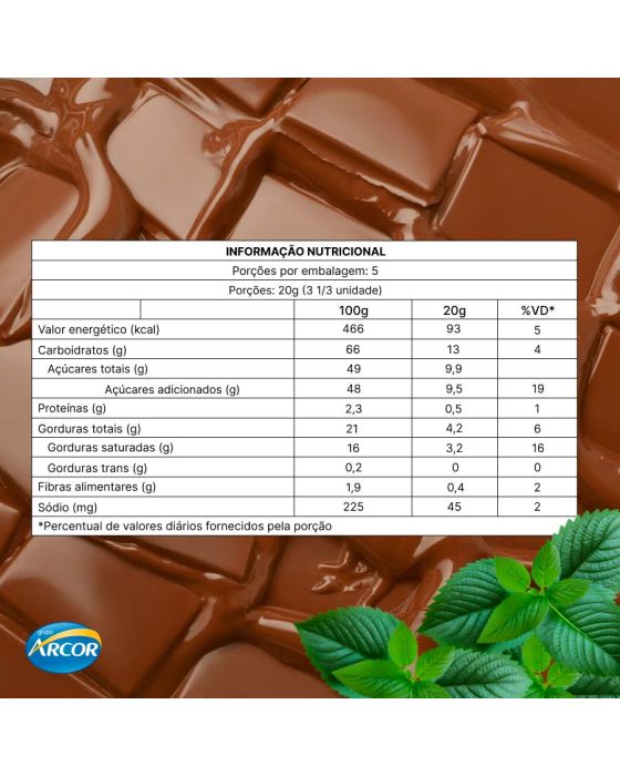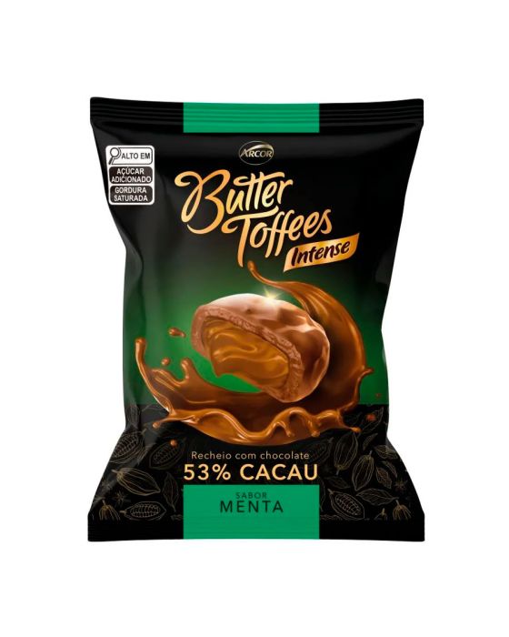 Características:A bala Butter Toffees Intense possui capa de chocolate 53% cacau e recheio de chocolate sabor menta. Delicioso e refinado, é ideal para os amantes de chocolate e que gostam da combinação da menta no recheio. Uma textura suave com recheio cremoso e que espalha sabor na sua boca.Detalhes:- Marca: Butter Toffes;- Fabricante: Arcor;- Modelo: Intense Chocolate 53% Cacau;- Linha: Balas;- Sabor: Menta;- Peso: 90g;- Contém: 1 unidade do produto com 90g;- Cobertura: Com capa de Chocolate 53% Cacau;- Recheio: Menta.Indústria Brasileira.Ingredientes:- Xarope de Glicose, Açúcar, Chocolate Amargo 53% Cacau, Leite Condensado, Óleo Vegetal de Palmiste Hidrogenado, Manteiga, Massa de Cacau, Sal, Emulsificantes> Lecitina de Soja e Mono Diglicerídeos de Ácidos Graxos.ALÉRGICOS: CONTÉM DERIVADOS DE LEITE, SOJA E PODE CONTER TRIGO, CEVADA, AVEIA, CENTEIO, AMENDOIM, AMÊNDOA, AVELÃS, NOZES, CASTANHA-DE-CAJU, CASTANHA-DO-PARÁ E COCO.CONTÉM GLÚTEN. CONTÉM LACTOSE. CONTÉM AROMATIZANTE.* As especificações podem ser alteradas sem aviso prévio** Imagem meramente ilustrativa.