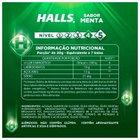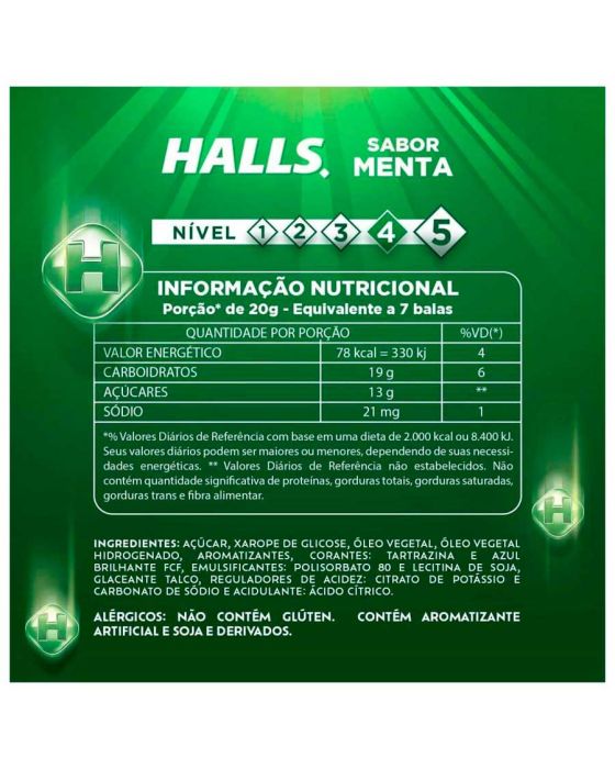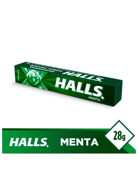 CaracterísticasHalls é bala mais consumida do Brasil! Sua formulação possui mentol, que garante uma poderosa sensação de refrescância e respiração profunda, para você se sentir pronto para encarar qualquer desafio. Disponível em deliciosos sabores, Halls é a bala perfeita para o dia-a-dia e também para momentos de curtição com a galera. Sua embalagem é prática e fácil de carregar no bolso ou na mochila para ter Halls sempre com você!- Sabor: Menta- 28g- Ingredientes: Açúcar, xarope de glicose, óleo vegetal, óleo vegetal hidrogenado, aromatizantes, emulsificantes: polisorbato 8 e lecitina de soja, corantes: azul brilhante FCF e tartrazina, glaceante talco, acidulante acido citrico e reguladores de acidez: citrato de potassio e carbonato de sodio.* As especificações podem ser alteradas sem aviso prévio** Imagem meramente ilustrativa.
