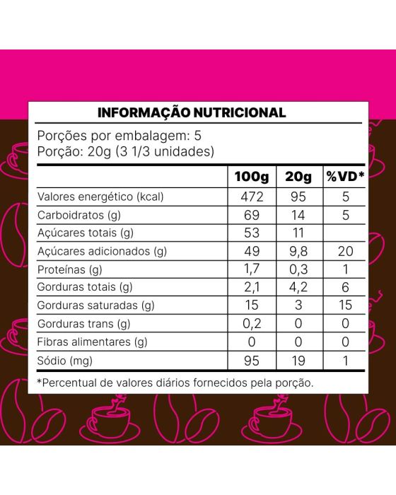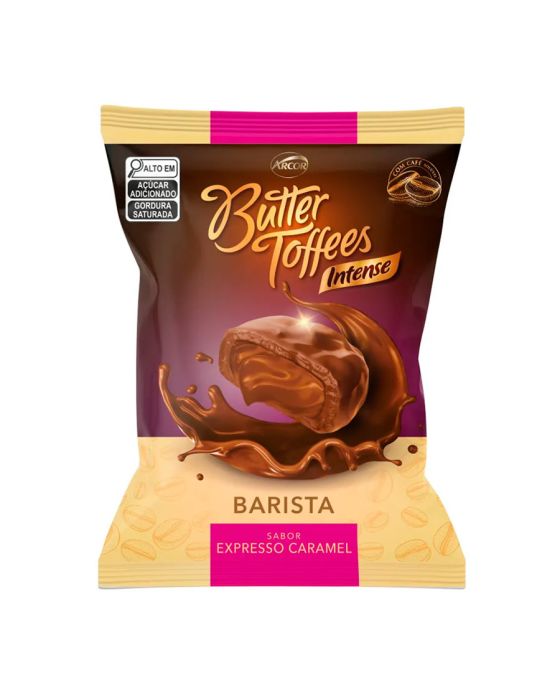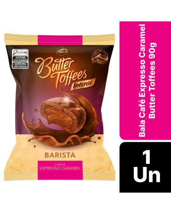 Características:A Bala Butter Toffes Barista Intense Café Expresso Caramel possui cobertura de leite e recheio de creme sabor Café Espresso. Sua textura leve e recheio cremoso fazem com que o sabor espalhe pela boca!Detalhes:- Marca: Butter Toffes;- Fabricante: Arcor;- Modelo: Barista Intense Café Expresso Caramel;- Linha: Balas;- Sabor: Caramelo (Caramelos de leite recheados com creme sabor café espresso);- Peso: 90g;- Contém: 1 unidade do produto com 90g;- Cobertura: Caramelo de leite;- Recheio: Caramelo Macchiato.Indústria Brasileira.Ingredientes:- Xarope de Glicose, Açúcar, Leite Condensado, Óleo Vegetal de Palmiste Hidrogenado, Gordura Vegetal, Manteiga, Óleo Vegetal de Soja, Soro de Leite em Pó, Permeado de Soro de Leite em Pó, Leite Integral em Pó, Sal, Café Solúvel, Corante Caramelo IV (INS150d), Aromatizante e Emulsificantes: Lecitina de soja, Mono e Diglicerídeos de Ácidos Graxos e Ésteres de Poliglicerol com Ácido Ricinoléico Interesterificado.Conservação:- Mantenha em local fresco e seco.Medidas:- Dimensões da embalagem: 18,5 x 15 x 2,5cm (CxLxA);- Peso: 112g.ALÉRGICOS: CONTÉM DERIVADOS DE LEITE, SOJA E PODE CONTER TRIGO, CEVADA, AVEIA, CENTEIO, AMENDOIM, AMÊNDOA, AVELÃS, NOZES, CASTANHA-DE-CAJU, CASTANHA-DO-PARÁ E COCO.CONTÉM GLÚTEN. CONTÉM LACTOSE. CONTÉM AROMATIZANTE. CONTEM AROMATIZANTES SINTÉTICO AO NATURAL.* As especificações podem ser alteradas sem aviso prévio** Imagem meramente ilustrativa.