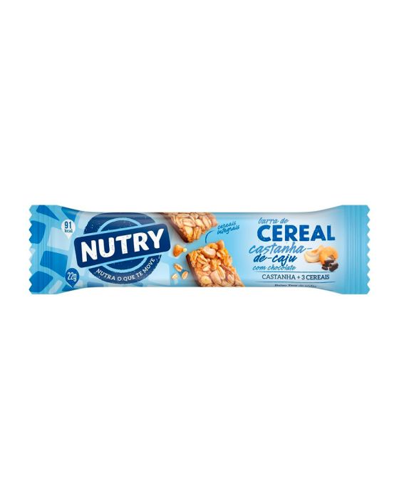 Caracteristicas:Além de nutritivas e práticas, as Barras de Cereal Nutry vão bem na mochila, no bolso ou no carro e são fáceis de encontrar pelo caminho. Conte com Nutry para nutrir o que te move ao longo do dia!- Sabor: Castanha-de-Caju com Chocolate- Peso: 22g- Calorias: 91kcalIngredientes: cereais (flocos de cereais e aveia), glicose de milho, cobertura sabor chocolate, açúcar invertido, castanha-de-caju, açúcar, açúcar mascavo, gordura vegetal, antioxidantes lecitina de soja e mistura de tocoferóis, corantes caramelo IV e urucum e aromatizante.CONTÉM GLÚTEN. CONTÉM LACTOSE.ALÉRGICOS: contém aveia, castanha-de-caju, leite, derivados de cevada e soja. pode conter amêndoa, amendoim, avelã, castanha-do-brasil, centeio, látex natural, macadâmia, nozes, pecãs, pistache e derivados de trigo.* As especificações podem ser alteradas sem aviso prévio ** Imagem meramente ilustrativa