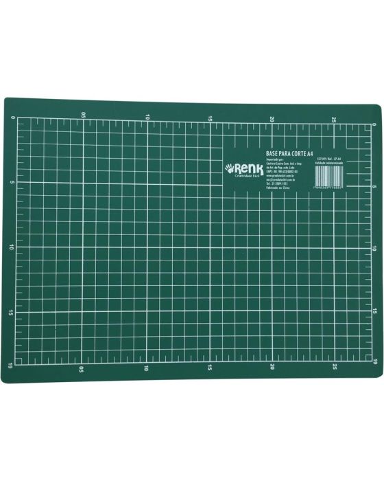 Caracteristicas:- Ideal para proteger seu móvel (área de trabalho) e corte da lâmina.- Formato A4 - 21 x 30cm- Cor verde- Dupla face- 1 lado quadriculado de 1x1cm e 1 ladro quadriculado de 2,5x2,5cm- Linha de produtos Renk * As especificações podem ser alteradas sem aviso prévio ** Imagem meramente ilustrativa.