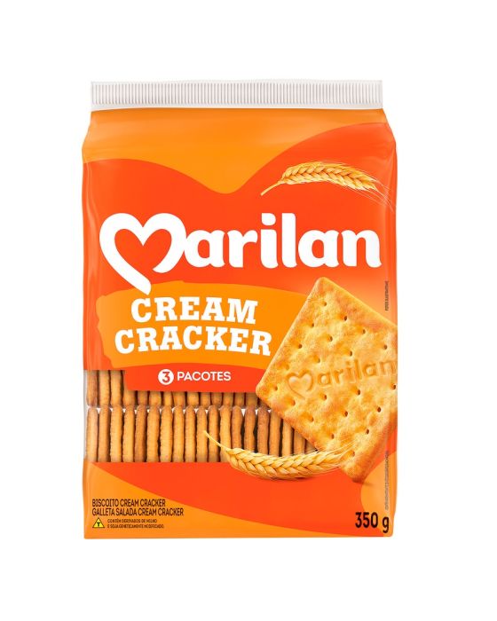 Caracteristicas:Os tradicionais Cream Cracker Marilan são delícias que combinam perfeitamente com o café da manhã ou da tarde.- Marca: Marilan- Peso: 350g- Sabor: Cream CrackerIngredientes:Farinha de Trigo Fortificada com Ferro e Ácido Fólico, Gordura Vegetal (Soja, Palma), Amido, Extrato de Malte, Açúcar Invertido, Sal, Fermento Biológico, Fermento Químico Bicarbonato de Sódio (INS 500ii), Acidulante Ácido Láctico (INS 270), Melhoradores de Farinha Protease (INS 1101 i) e Metabissulfito de Sódio (INS 223) e Enzima Xilanase.CONTÉM GLÚTEN.Contém traços de leite ou derivados, nozes, amendoim e coco.Conservar em local seco, fresco e inodoro. Após aberta a embalagem,manter o produto em recipiente tampado em local fresco.* As especificações podem ser alteradas sem aviso prévio ** Imagem meramente ilustrativa / acessórios da foto apenas pra composição da ambientação, não acompanham o produto.