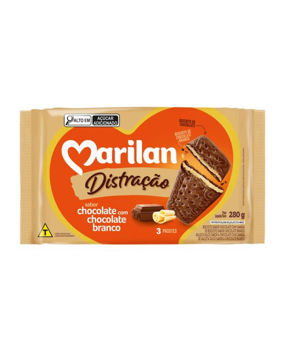 Biscoito Distracao Chocolate/chocolate Branco 280g Marilan