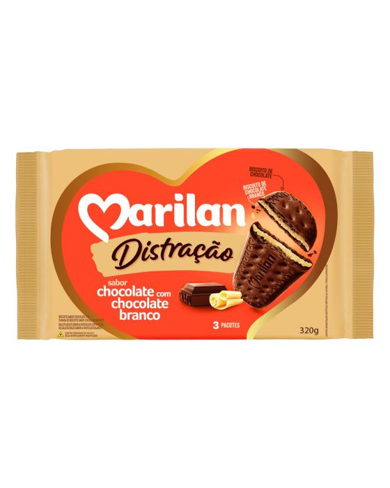 Caracteristicas:Biscoito por dentro e por fora, o Distração é a perfeita combinação de dois sabores em uma só mordida. - Embalagem: 360g- Marca: Marilan- Com 3 sub pacotes dentro da embalagem de venda- Sabor: Chocolate por fora, recheio de chocolate brancoCONTÉM GLÚTEN.* As especificações podem ser alteradas sem aviso prévio ** Imagem meramente ilustrativa.