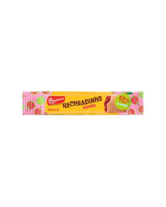 Caracteristicas:Biscoito crocante com um delicioso recheio cremoso de goiaba, os recheadinhos possuem 60% de fruta no recheio e são uma ótima opção para o lanchinho dos pequenos!- Sabor: Goiabinha- Embalagem com 112g (8 unidades)Ingredientes: goiabada, farinha de trigo enriquecida com ferro e ácido fólico, açúcar, gordura vegetal, margarina, fibra de aveia, leite integral, amido, glucose, sal, aromatizantes, fermentos químicos: pirofosfato ácido de sódio, bicarbonato de sódio e bicarbonato de amônio, emulsificante: lecitina de soja e corante natural: carmim. CONTÉM GLÚTEN. CONTÉM LACTOSE. ALÉRGICOS: contém leite e derivados, derivados de trigo, aveia e de soja. pode conter: centeio, cevada, amendoim, amêndoa, avelãs, castanha-de-caju, castanha-do-pará, pistaches, gergelim, nozes e ovos. a validade mencionada refere-se ao produto ainda fechado, desde que, conservado em local seco, fresco e inodoro. consumir logo após aberto.* As especificações podem ser alteradas sem aviso prévio ** Imagem meramente ilustrativa.