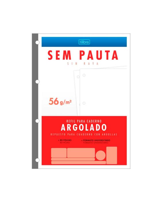 Caracteristicas:O Refil para Caderno Argolado Universitário Folhas Soltas Académie 96 Folhas possui folhas pautadas. Ideal para o dia a dia na escola ou na faculdade!Detalhes:- Marca: Tilibra.- Modelo: Académie.- Referência: .- Linha: Folhas soltas para caderno argolado.- Capa flexível.- Quantidade: 80 folhas.- Contém: 1 embalagem com 80 folhas.- Formato: 200 x 275mm (20 x 27,5cm).- Gramatura: 56 g/m².- Furos: 4 furos.- Sem pauta.- Miolo.- Produto certificado FSC.Espaçamento Furos:- Espaçamento de 7,2cm entre os furos.* As especificações podem ser alteradas sem aviso prévio ** Imagem meramente ilustrativa.