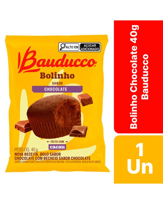 Características:Já pensou em deixar o seu lanche do dia a dia ainda mais saboroso?Com a nova receita, o bolinho Bauducco Chocolate tem uma massa super fofinha, e é uma fonte de vitaminas e cálcio, ideal para as crianças levarem na lancheira para a escola ou para os adultos que estão sempre em movimento e precisam de um lanche rápido e prático!Detalhes:- Marca: Bauducco;- Linha: Bolinhos;- Sabor: Chocolate;- Tipo: Porção individual;- Peso: 40g;- Contém: 1 unidade do produto;- Feito com cacau;- Não possui recheio;- Nova receita.Indústria Brasileira. | Validade: Impresso na embalagem do produto.Ideal para:- Ideal para o lanche da manhã ou da tarde em hospitais, clínicas de saúde, estética e odontologia, refeitórios empresariais e ambientes corporativos.Conservação:- Mantenha em local seco, fresco e inodoro;- Conservar longe Da Umidade;- Conservar fora do abrigo do calor, temperatura AmbienteIngrediente:- Açúcar, Farinha de trigo enriquecida com ferro e ácido fólico, Óleo de canola, Ovo integral, Leite em Pó integral, Cacau em Pó, Sal, Fermento químico (DifosfatoDissódigo, bicarbonato de sódio, e fosfato monocálcico), Aromatizantes e conservadores: Propionato de cálcio, Sorbato de cálcio e ácido sórbico e emulsificante: Mono e Diglicerídeos ácidos Graxos.Medidas:- Dimensões da embalagem: 10 x 7,8 x 3,5cm (CxLxA);- Peso: 40g.ALÉRGICOS: CONTÉM OVOS, DERIVADOS DE LEITEM SOJA, E DE TRIGO. PODE CONTER AMÊNDOAS, AMENDOIM, AVEIA, AVELÃS, CASTANHA-DE-CAJU, CASTANHA-DO-PARÁ, CENTEIO, CEVADA E PISTACHE.CONTÉM GLÚTEN. CONTÉM LACTOSE.* As especificações podem ser alteradas sem aviso prévio ** Imagem meramente ilustrativa.