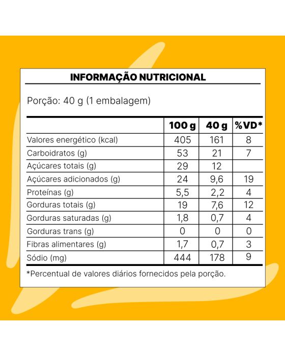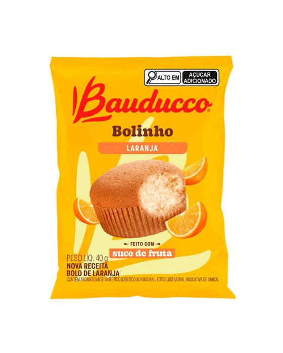 Características:Já pensou em deixar o seu lanche do dia a dia ainda mais saboroso?Com a nova receita, o bolinho Bauducco Laranja tem uma massa super fofinha, e é uma fonte de vitaminas e cálcio, ideal para as crianças levarem na lancheira para a escola ou para os adultos que estão sempre em movimento e precisam de um lanche rápido e prático!Detalhes:- Marca: Bauducco;- Linha: Bolinhos;- Sabor: Laranja;- Tipo: Porção individual;- Peso: 40g;- Contém: 1 unidade do produto;- Feito com suco da fruta;- Nova receita.Indústria Brasileira. | Validade: Impresso na embalagem do produto.Ideal para:- Ideal para o lanche da manhã ou da tarde em hospitais, refeitórios empresariais e ambientes corporativos.Conservação:- Mantenha em local seco, fresco e inodoro;- Conservar longe Da Umidade;- Conservar fora do abrigo do calor, temperatura AmbienteIngrediente:- Farinha de trigo enriquecida com ferro e ácido fólico, açúcar, óleo de canola, ovo integrar, suco de laranja integral, leite em pó integral, sal, fermento em pó químico (difosfato dissódico, bicarbonato de sódio, e fosfato monocálcico), Conservadores: propionato de cálcio, Sorbato de potássio e ácido sórbico, emulsificante mono, e diglicerídeos de ácidos graxos e aromatizantes.Medidas:- Dimensões da embalagem: 10 x 7,8 x 3,5cm (CxLxA);- Peso: 40g.ALÉRGICOS: CONTÉM OVOS, DERIVADOS DE LEITEM SOJA, E DE TRIGO. PODE CONTER AMÊNDOAS, AMENDOIM, AVEIA, AVELÃS, CASTANHA-DE-CAJU, CASTANHA-DO-PARÁ, CENTEIO, CEVADA E PISTACHE.CONTÉM GLÚTEN. CONTÉM LACTOSE.* As especificações podem ser alteradas sem aviso prévio ** Imagem meramente ilustrativa.
