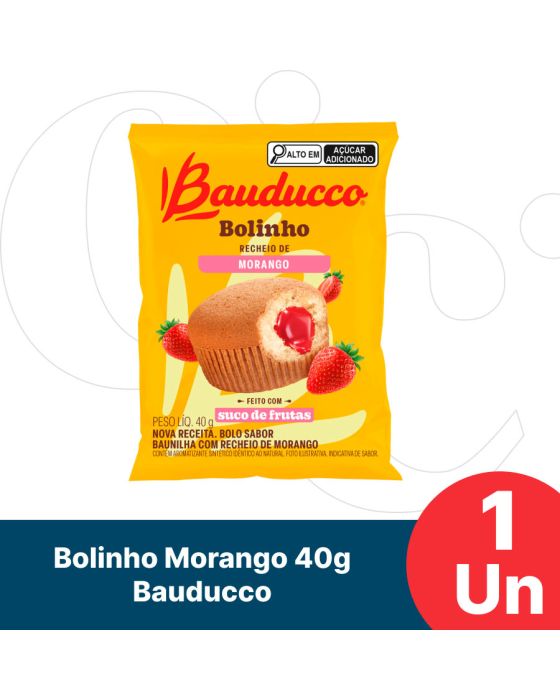 Caracteristicas:O bolinho Bauducco é a combinação perfeita de uma massa fofinha com um recheio irresistível. Além de ser fonte de vitaminas, é ideal para ser levado na lancheira, ou para ser consumido nos lanchinhos ao longo do dia.- Sabor: Morango- 40gIngredientes: Açúcar, farinha de trigo enriquecida com ferro e ácido fólico, ovo integral, óleo de canola, suco de morango, leite integral, mineral e vitaminas (cálcio e vitaminas: b1, b2, niacina, b6 e a), sal, suco de amora, umectante: glicerina, fermento em pó químico (pirofosfato ácido de sódio, bicarbonato de sódio e fosfato monocálcico), conservadores: propionato de cálcio e sorbato de potássio, emulsificante: mono e diglicerídeos de ácidos graxos, aromatizantes, acidulante: ácido cítrico e corante natural: carmim.CONTÉM GLÚTEN. CONTÉM LACTOSE.ALÉRGICOS: Contém leite, ovos e derivados de trigo. Pode conter: centeio, cevada, aveia, amendoim, amêndoa, avelãs, castanha-de-caju, castanha-do-Pará, pistaches, soja, gergelim e nozes.* As especificações podem ser alteradas sem aviso prévio ** Imagem meramente ilustrativa.