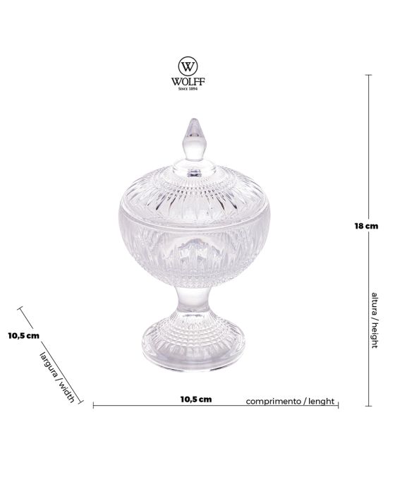 Pote De Vidro Bomboniere C/ Pe Cristal Queen 11x18cm Wolff