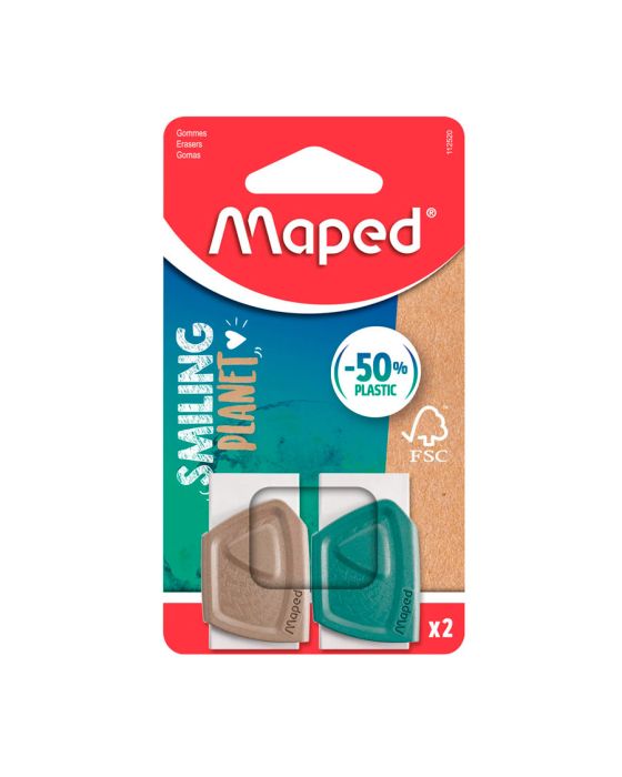 Características:Uma borracha durável com uma capa de plástico ergonômica e texturizada. A borracha Precision é livre de PVC e ftalatos. A capa texturizada permite uma pegada ergonômica para crianças. A capa ergonômica é composta por 50% de fibras de madeira com certificação FSC, essa composição responsável reduz a quantidade de plástico em 50%.Detalhes:- Marca: Maped;- Modelo: Smilling Planet;- Referência: 112520FM;- Linha: Borracha;- Cor da capa: Verde, Bege (Cores cortidas);- Cor da borracha: Branca;- Contém: 1 blister com 2 unidade do produto;- Produto livre de PVC e Ftalatos;- Capa ergonômica e texturizada;- Produto certificado: FSC.Composição:- Fabricado em 50% fibras de madeira com certificação FSC e 50% plástico.Cores sortidas, será enviado de acordo com a disponibilidade do estoque. Não é possível escolher uma cor específica.* As especificações podem ser alteradas sem aviso prévio ** Imagem meramente ilustrativa