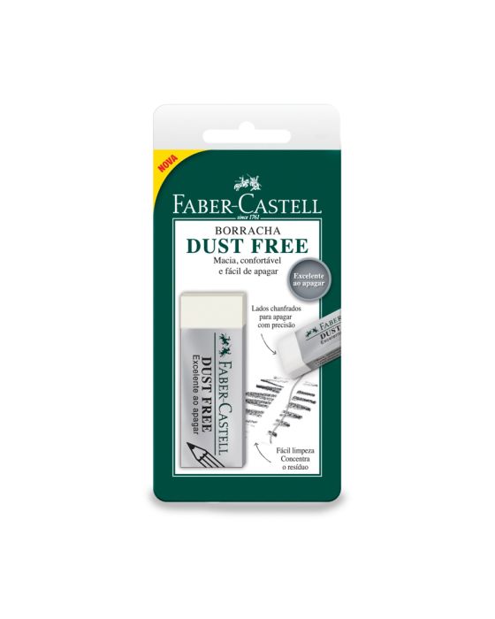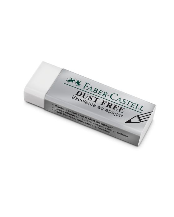 Características:Produto de excelente desempenho e alta durabilidade. A borracha Faber-Castell conta com a tecnologia Dust Free: macia, confortável e fácil de apagar. Os lados são chanfrados para apagar com precisão e o produto é excelente ao apagar. A borracha vem no tamanho grande para maior rendimento.Detalhes:- Marca: Faber-Castell;- Modelo: Borracha Dust Free Grande;- Referência: 187129;- Linha: Borrachas;- Cor: Branca;- Contém: 1 blister com 1 unidade do produto;- Alto desempenho e durabilidade;- Tecnologia Dust Free: macia, confortável e fácil de apagar;- Excelentes ao apagar;- Lados chanfrados para apagar com precisão;- Fácil limpeza e concentra o resíduo;- Este produto pode ser reciclado.Composição:- Composição Borracha: Resinas sintéticas, plastificantes, cargas e pigmentos;- Composição Cinta: Papel cartão e tinta off set.ATENÇÃO! NÃO RECOMENDÁVEL PARA CRIANÇAS MENORES DE 3 (TRÊS) ANOS POR CONTER PARTE(S) PEQUENA(S) QUE PODE(M) SER ENGOLIDA(S) OU ASPIRADA(S).* As especificações podem ser alteradas sem aviso prévio ** Imagem meramente ilustrativa.