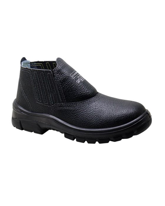 Características:A Bota Elástico Kadesh Combat, preta, com solado em poliuretano (PU) garante o conforto e a proteção necessária para enfrentar o dia-a-dia em diversos ambientes de trabalho. Atende as normas da ABNT NBR ISO.Detalhes:- Marca: Kadesh;- Modelo: Combat;- Referência: 1000;- Linha: Sapatos de proteção individual;- Cor: Preto;- Tipo: Biqueira PVC;- Tamanho: Número 41;- CA: 43.108;- Norma: ABNT NBR ISO;- Contém: 1 par de sapato;- Possui palmilha;- Possui biqueira para proteção;- Antiderrapante.Indústria Brasileira.Ideal para:- Indicado para o uso nos segmentos hotelaria, serviços gerais, prestadoras de serviços, limpeza urbana, madeireiras, construção civil e indústrias.Diferenciais:- Confeccionado 100% em couro, 18/20 mm linhas de espessura, com fechamento em elástico lateral, e costuras simples, duplas e quádruplas;- Forração da gáspea em não tecido transpirável com dorso acolchoado, contraforte em material resinado termoativado, e forro suador em não tecido respirável;- Palmilha de montagem sintética, não tecido, costurada pelo sistema strobel e sobrepalmilha de conforto em EVA, removível, dublada em tecido para absorção do suor. Reduz o impacto proporcionando conforto aos pés e um caminhar uniforme e suave;- Solado em poliuretano (PU), injetado diretamente no cabedal, com função antiderrapante e alta resistência ao desgaste. Possui sistema de absorção de impactos e desenho plantar rebaixado para melhor mobilidade ao caminhar.Orientações:- Segurança: Para ter a segurança necessária, utilize o calçado correto para finalidade a que se destina. Use a numeração correta, pois assim evitará possíveis incidentes. Deve ser levado em consideração para a seleção do melhor modelo os perigos e riscos envolvidos na atividade;- Secagem: O calçado deve ser guardado em um local arejado, longe do calor e da umidade. Nunca exponha o calçado ao calor intenso, aquecedores, estufas, fogões e ao sol. As condições ideais de armazenamento são a 27°C e 63% de umidade. Fazendo isso, você evita a ocorrência de hidrólise, processo em que o calor e a umidade formam moléculas de água que reagem com os produtos químicos do solado de poliuretano, causando sua decomposição;- Limpeza e Higienização: Limpe apenas externamente, com pano ligeiramente úmido, utilizando apenas água e detergente neutro. Dentro do calçado, utilize um pano ligeiramente úmido com álcool para higienizar. As palmilhas podem ser lavadas naturalmente com água e sabão;- Revezamento: Adote o revezamento e alterne o uso dos sapatos (deixe um par totalmente aberto por pelo menos 24 horas). Assim o calçado respira e permite que a transpiração acumulada durante o uso possa ser liberada para o exterior, mantendo-os higienizados e confortáveis, evitando o surgimento de bactérias, fungos e mau cheiro. Caso não seja possível possuir dois pares, uma opção é usar duas palmilhas alternadas.Recomendação:- O suor é fator determinante para danificar um calçado. Portanto, é muito importante o uso das meias de algodão para auxiliar na absorção do suor liberado pelos pés. A troca das meias deve ser feita todos os dias, não as reutilize antes de lavá-las;- Nunca modifique seu calçado, além de alterar as características e automaticamente perder a Certificação de Autorização – C.A. do MTE, pode gerar riscos de acidentes;- O descarte do calçado de segurança deve ser feito corretamente por empresas habilitadas, por exemplo coprocessados em fornos de cimento.Composição:- Solado: Solado em poliuretano (PU), injetado diretamente no cabedal;- Biqueira: Em PP (polipropileno), com reforço frontal e formato anatômico;- Palmilha: Palmilha de montagem sintética, não tecido, costurada pelo sistema strobel e sobrepalmilha de conforto em EVA;- Forração: Forração da gáspea em não tecido transpirável com dorso acolchoado, contraforte em material resinado termoativado, e forro suador em não tecido respirável.- Cabedal: Confeccionado 100% em couro, 1,8/2,0 mm (18/20 linhas) de espessura.Medidas:- Dimensões do produto: 28,5 x 23 x 13cm (CxLxA);- Peso: 580g.Garantia do fornecedor: 90 dias contra defeitos de fabricação.*Verifique se o CA escolhido atende as suas necessidades de segurança. Em caso de dúvida, consulte sempre o seu profissional de segurança do trabalho.* As especificações podem ser alteradas sem aviso prévio ** Imagem meramente ilustrativa.