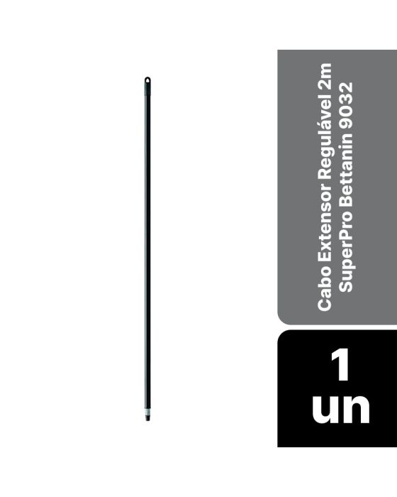 Características:Com o Cabo Extensor SuperPro Bettanin, você irá conseguir alcançar os lugares mais altos dos ambientes para atender a necessidade da sua empresa!Detalhes:- Marca: SuperPro Bettanin;- Modelo: 9032;- Linha: Cabos extensores;- Cor: Preto/Cinza;- Tamanho: 2 metros;- Contém: 1 unidade do produto;- Prático de usar;- Alcança os lugares mais altos.Composição: - Fabricado em material sintético, pigmento e metal.Medidas:- Dimensões do produto fechado: 2,5 x 2,5 x 1,09m (CxLxA);- Dimensões do produto aberto: 2,5 x 2,5 x 2m (CxLxA).* As especificações podem ser alteradas sem aviso prévio ** Imagem meramente ilustrativa.