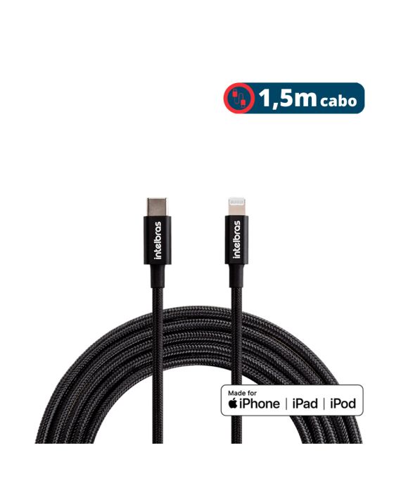 Cabo P/ Smartphone Usb-c Para Lightning 1,5m Nylon Preto Eucl15np Intelbras