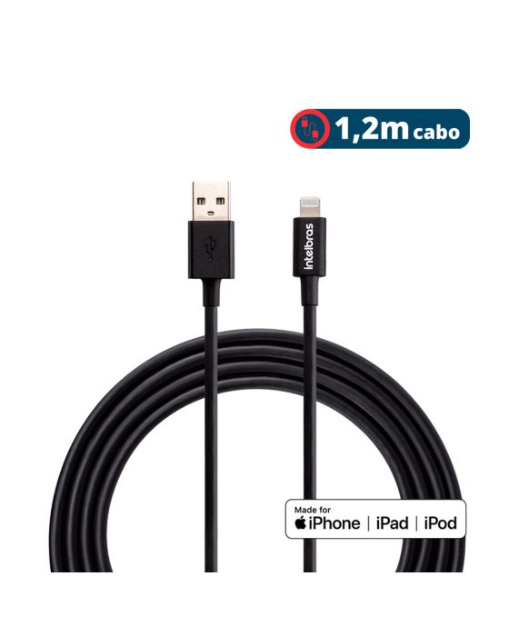 Cabo P/ Smartphone Usb Para Lightning 1,2m Pvc Preto Eual12pp Intelbras