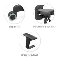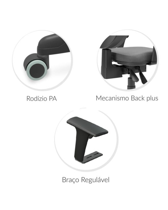 CaracterísticasCadeira Giratória Executiva BackPlus, encosto com regulagem de altura/inclinação e braços reguláveis, em conformidade com a NR17- Tecido: PP (Polipropileno)- Base estrela 5 pés com raio de 575mm, metálica com capa de proteção em nylon preto.- Braços reguláveis: Fixado ao assento a mesma, em polipropileno com regulagem de altura de 70mm. Níveis de regulagem, 7 posições.- 5 Rodízios de 55mm em Poliamida Natural.- Assento com dimensões de 470mm de largura, 440mm de profundidade, 65mm de espessura com cantos arredondados e espuma injetada com densidade de 45 kg/m3 (garantindo maior durabilidade da espuma), de forma levemente adaptada ao corpo. Altura máxima do assento até o chão de 570mm., altura total da cadeira 1080mm- Encosto consiste em uma estrutura em polipropileno copolímero injetado de forma levemente adaptada ao corpo, com dimensões de 420mm de largura por 380mm de altura com espessura de 98mm com cantos arredondados e espuma injetada com densidade de 45kg/m3 (garantindo maior durabilidade da espuma) e 50mm de espessura.- Mecanismo Backsystem: Encosto com regulagem de inclinação e altura, podendo ser ajustado conforme a necessidade do usuário. Produzido em aço 1010/1020 – garantindo maior resistência e segurança ao usuário.- Suporta até 120 kg- Pintura: Époxi (Pintura uniforme, não proporciona oxidação e corrosão. Com Certificado de Conformidade.- Peso Bruto: 15,65kg- Dimensões aproximadas da embalagem: 569mmx374mmx608mm. (0,130m3)- Cadeira 100% nacional- Garantia: 5 anos contra defeitos de fabricação através do SAC PLAXMETAL fone (54) 2107-1800 – [email protected].- Conteúdo da embalagem: 1 par de braços – que será parafusado, 1 encosto pré montado com o mecanismo, 1 assento que será parafusado, 1 pistão que é só encaixar, 1 estrela pré montada com os rodízios e 1 manual de montagem.Laudo técnico em conformidade com a Norma Regulamentadora – NR 17 emitido por médico do trabalho.Laudo de acordo com a NBR 9209/86 atestando que os produtos possuem revestimento em fosfato com massa igual ou superior a 1,2g/m².Laudo emitido por laboratório acreditado pelo INMETRO de acordo com a NBR 10443/08 e resultado de espessura mínima de 70 micras.Certificado de Conformidade emitido por uma OCP acreditada pelo INMETRO, comprovando que o fabricante tem seu processo de preparação e pintura de superfícies metálicas certificado pelo Modelo 5 conforme a PRO-027, garantindo o atendimento e conformidade às normas ABNT NBR 8094, ABNT NBR 8095, ABNT NBR 8096, ABNT NBR 11003, ASTM D 523, ASTM D 3359, ASTM D 3363, ASTM D 7091, NBR 5841, ASTM D 2794, NBR ISO 4628-3.