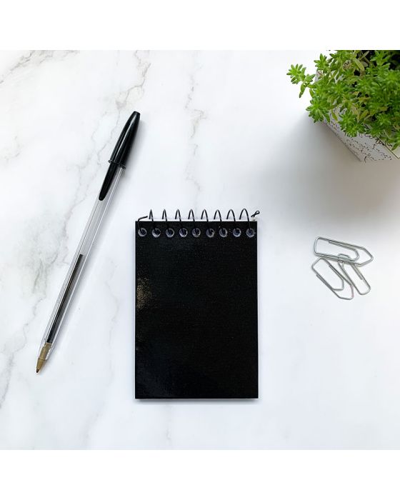 Caracteristicas:- Capa dura na cor preta- 64 folhas em papel 50g/m2- Formato: 7,2 x 10 cm- Espiral no topo* As especificações podem ser alteradas sem aviso prévio ** Imagem meramente ilustrativa