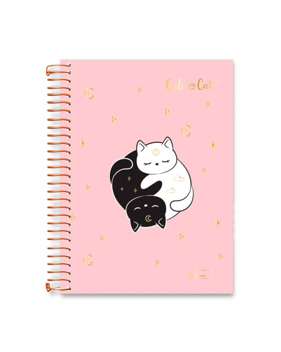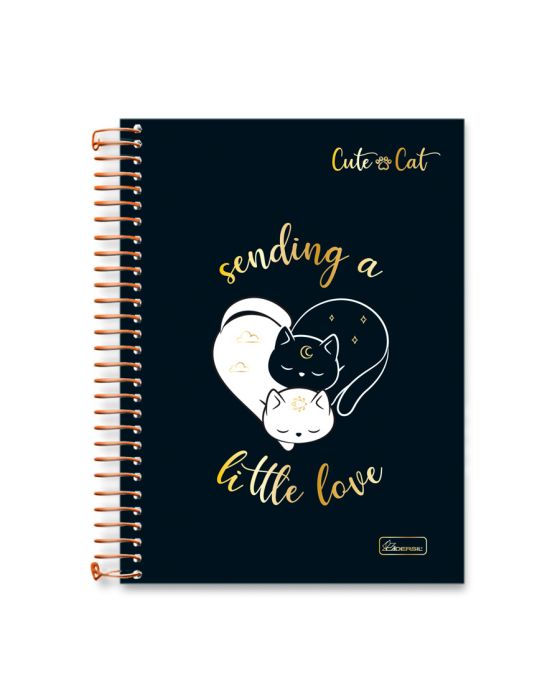 Caderneta Espiral Capa Dura 80fls Pautada Cute Cat 11x15,7cm Cadersil