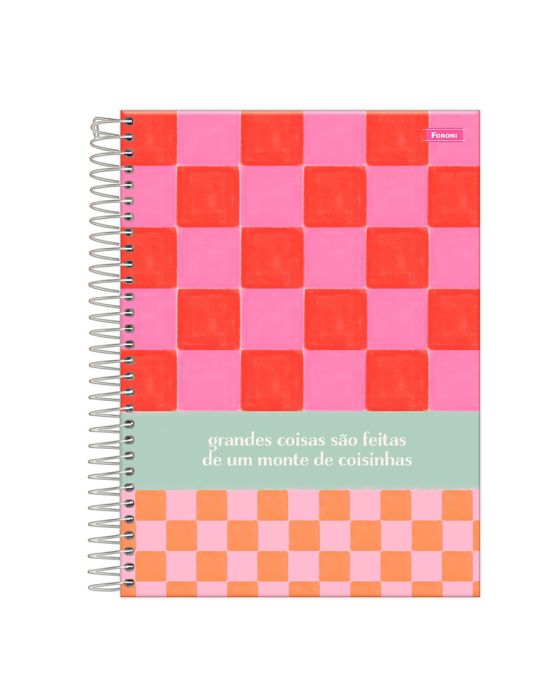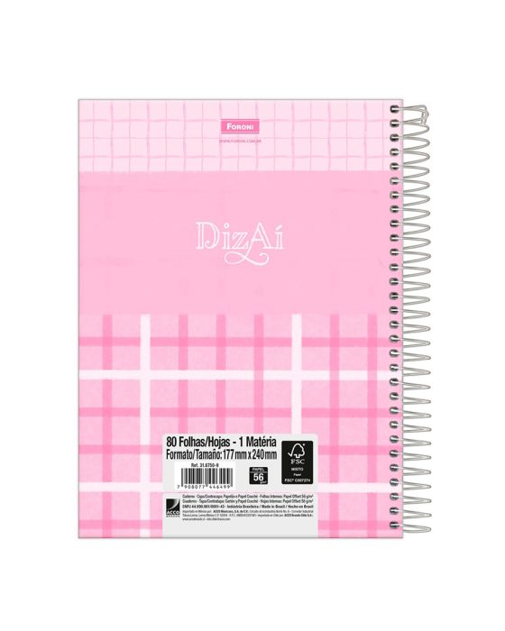 Características:O Caderno College Capa Dura Dizaí contém estampas atuais, coordenadas com cores vibrantes e iluminadas. Traz consigo charme, descontração e mensagens cheias de positividade que deixam os dias mais leves.Detalhes:- Marca: Foroni;- Modelo: Dizaí;- Referência: 3167509;- Linha: Caderno Colegial;- Tipo: Espiral;- Capa: Capa dura com laminação fosca e Verniz UV (Estampas sortidas);- Contra capa: Contra capa decorada;- Quantidade de folhas: 80 folhas;- Quantidade de matérias: 1 matéria;- Contém: 1 unidade do produto com 80 folhas;- Formato: 177 x 240mm (17,7 x 24cm);- Gramatura: 56g/m2;- Cor do Espiral: Branca;- Folhas: Pauta na cor preta;- Possui bolsa plástica transparente;- Possui uma cartela de adesivos;- Miolo;- Produto certificado: FSC.Composição; - Capa: Capa em papelão e papel Couché;- Folhas Internas: Papel Offset 56g/m2.Medidas:- Dimensões do produto: 177 x 240mm (17,7 x 24cm);- Gramatura: 56g/m2.Estampas sortidas, será enviado de acordo com a disponibilidade do estoque. Não é possível escolher uma estampa específica.* As especificações podem ser alteradas sem aviso prévio ** Imagem meramente ilustrativa.