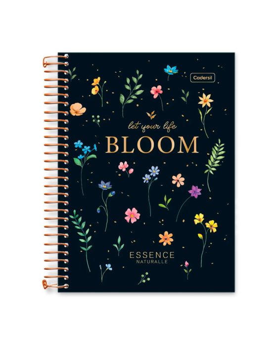 Características:O Caderno Colegial da linha Essence Naturalle traz a temática e delicadeza das flores para sua rotina de estudos. Com uma capa encantadora, ele oferece um toque de suavidade e inspiração. Além disso, possui bolsa portfólio, cartela de adesivos, editorial, divisórias de matérias, miolo com microsserrilhas e muito mais. Seja para tomar notas, fazer exercícios ou registrar ideias criativas, o Caderno Colegial da Essence Naturalle é o companheiro perfeito para trazer beleza à sua jornada acadêmica.Detalhes:- Marca: Cadersil;- Modelo: Essence Naturalle;- Referência: 0831002;- Linha: Cadernos Espiral;- Tipo: Colegial;- Capa: Capa Dura com laminação fosca e Hot Stamping dourado (Estampas sortidas);- Contra capa: Contra capa simples;- Quantidade de folhas: 80 folhas;- Quantidade de matérias: 1 matéria;- Contém: 1 unidade do produto com 80 folhas;- Formato: 177 x 240mm (17,7 x 24cm);- Gramatura: 56g/m2;- Cor espiral: Rose Gold;- Folhas: Pautada na cor preto;- Cor das folhas: Branca;- Bolsa portfólio;- Possui uma cartela de adesivos funcionais;- Possui microsserrilhas;- Editorial;- Miolo.Composição; - Capa: Capa em papelão e papel Couché;- Folhas Internas: Papel Offset 56g/m2.Medidas:- Formato: 177 x 240mm (17,7 x 24cm);- Gramatura: 56g/m². Estampas sortidas, será enviado de acordo com a disponibilidade do estoque. Não é possível escolher uma estampa específica.* As especificações podem ser alteradas sem aviso prévio ** Imagem meramente ilustrativa.