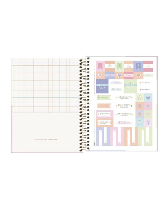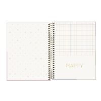 Características:O Caderno Espiral Capa Dura Colegial 1 Matéria Happy 80 Folhas da Tilibra é perfeito para você que busca uma opção para organização da rotina de estudos com visual em cores pastel.Use este modelo, com capa dura e parte interna decorada, espiral colorido, bolsa de papel decorada para guardar trabalhos, adesivos funcionais, folhas pautadas e decoradas, para anotar as aulas, fazer resumos, listar tarefas e organizar as ideias de forma prática e eficiente.Detalhes:- Marca: Tilibra;- Modelo: Happy;- Referência: 348198;- Linha: Caderno Colegial;- Tipo: Espiral;- Capa: Capa dura com detalhe metalizado e com relevo (Estampas sortidas);- Contra capa: Contra capa decorada;- Quantidade de folhas: 80 folhas;- Quantidade de matérias: 1 matéria;- Contém: 1 unidade do produto com 80 folhas;- Formato: 177 x 240mm (17,7 x 24cm);- Gramatura: 56 g/m²;- Cor espiral: Dourado;- Idioma: Português / Espanhol;- Bolsa de papel dupla decorada;- Possui uma cartela de adesivos funcionais;- Índice decorado;- Pauta cinza decorada;- Folhas destacáveis;- Produto Certificado: FSC.Composição; - Capa: Capa em papelão e papel couché;- Folhas Internas: Papel Offset 56g/m2.Medidas:- Formato: 177 x 240mm (17,7 x 24cm);- Gramatura: 56 g/m². Capas sortidas, será enviado de acordo com a disponibilidade do estoque. Não é possível escolher uma capa específica.* As especificações podem ser alteradas sem aviso prévio ** Imagem meramente ilustrativa.