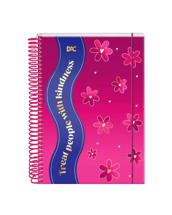 Características:O caderno ideal para acompanhar todo o conteúdo dos estudos e compacto para ficar mais confortável. Inclusive é perfeito para quem quer usar o caderno apenas para as anotações diárias. Tem capa dura e acabamento diferenciado, tais como: espiral em plástico que não entorta e nem machuca; fechamento em elástico podendo assegurar alguns papéis soltos dentro do caderno e evitar também que abra e amasse as folhas.Detalhes:- Marca: DAC;- Modelo: Flower;- Referência: 4357;- Linha: Cadernos Colegial;- Capa: Capa dura com laminação brilho e hotstamping;- Contra capa: Contra capa simples;- Formato: 177 x 240mm (17,7 x 24cm);- Tamanho: Colegial;- Cor: Pink;- Quantidade de páginas: 160 folhas;- Quantidade de matérias: 10 matérias;- Contém: 1 unidade do produto com 80 páginas;- Espiral: Pink;- Fechamento: Em elástico;- 10 divisórias em papel, todas removíveis com a possibilidade de remanejar para onde quiser.Composição:- Papel Offset.Medida:- 17,7 x 24cm (CxL).* As especificações podem ser alteradas sem aviso prévio ** Imagem meramente ilustrativa.