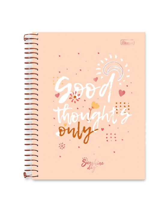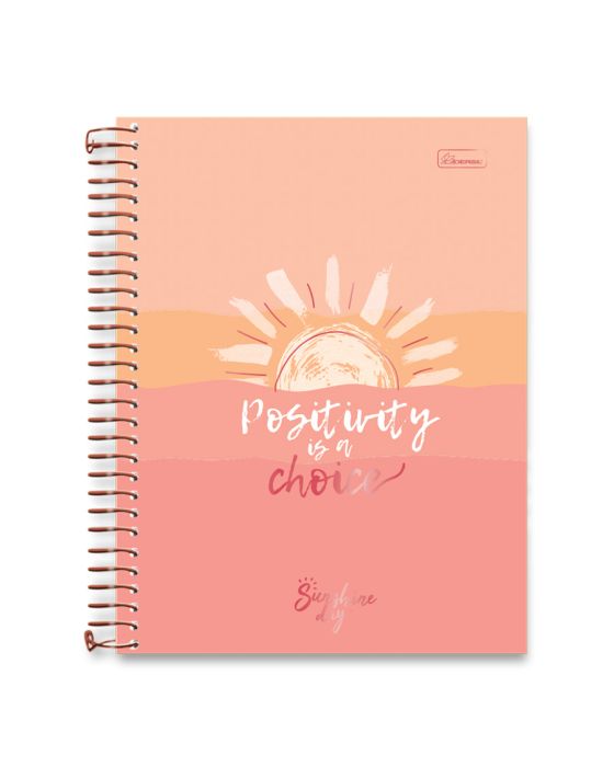Características:Bons pensamentos para dias ensolarados, essa é a vibe! A linha Sunshine Day é puro brilho e positividade, ela trouxe frases inspiradoras destacadas em hot stamping rose gold. Um charme! O Caderno Universitário possui bolsa portfólio, cartela de adesivos, editorial, divisórias de matérias, miolo com microsserrilhas e espiral rose gold.Detalhes:- Marca: Cadersil;- Modelo: Sunshine Day;- Linha: Cadernos Universitários;- Tipo: Espiral;- Capa: Capa dura com laminação fosca e hot stamping (Estampas sortidas);- Contra capa: Contra capa decorada;- Quantidade de folhas: 80 folhas;- Quantidade de matérias: 1 matéria;- Formato: 199 x 270mm (19,9 x 27cm);- Gramatura: 56g/m2;- Contém: 1 unidade do produto;- Espiral: Rose Gold;- Possui uma cartela de adesivos;- Possui bolsa portfólio;- Editorial;- Divisórias de matérias;- Miolo com microsserrilhas.Medidas:- Dimensões: 199 x 270mm (19,9 x 27cm).Estampas sortidas, será enviado de acordo com a disponibilidade do estoque. Não é possível escolher uma estampa específica.* As especificações podem ser alteradas sem aviso prévio ** Imagem meramente ilustrativa.
