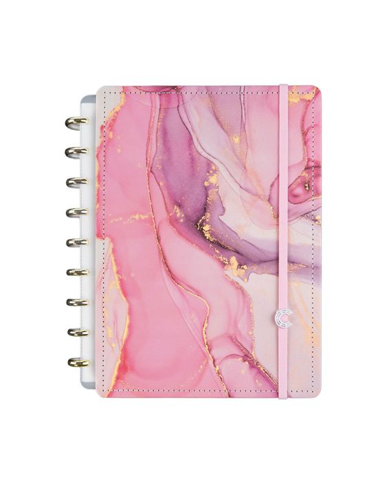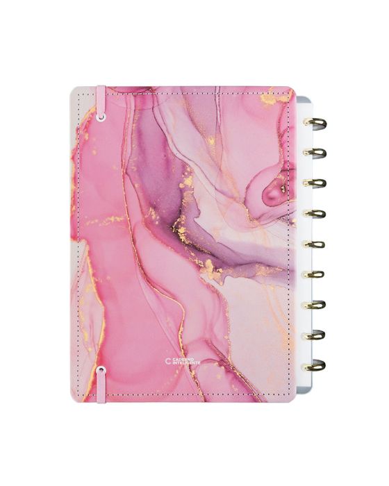 Características:O caderno Ágatha rosa não será apenas seu confidente, mas também seu amigo e companheiro. Escreva suas histórias com estilo! Inspirado em uma pedra preciosa, sua capa marmorizada e detalhes dourados, o caderno Ágatha é perfeito para quem quer adicionar um pouco de luxo ao seu dia a dia.Ele tem tudo o que você precisa: facilidades como elástico e bolsa plástica, além de fluidez com folhas e capas destacáveis.Caderno inteligente, só Caderno inteligente ;)Detalhes:- Marca: Caderno Inteligente;- Modelo: Ágatha;- Referência: CIMD3119;- Linha: Cadernos;- Tipo: Médio;- Cor: Rosa com estampa de mármore com detalhes em dourado e incolor*;- Quantidade folhas: 80 folhas (60 pautadas e 20 lisas);- Capacidade de folhas: Até 140 folhas;- Contém: 1 unidade do produto;- Tamanho: 23mm X 175mm (23 x 17,5cm);- Gramatura: 90g/m2**;- Fechamento: em elástico na cor rosa;- Possui uma folha de adesivos decorativos;- Produto customizável, permitindo adicionar alças ou trocar os discos pela cor que preferir;- Produto atóxico;- Produto original.Indústria Brasileira. | Validade: Indeterminada.Acompanha:- Capa e contracapa rígidas;- 01 folha de adesivos;- 01 bolsa plástica;- 01 folha de instrução de uso e manuseio, com refis e acessórios da marca disponíveis no verso;- 01 folha de identificação com calendário no verso;- 04 divisórias com abas para identificação (02 pretas e 02 transparentes);- 80 folhas offset 90g (60 folhas pautadas e 20 folhas lisas brancas para impressão);- 01 suporte com elástico para 01 caneta ou 01 lápis e discos M + elástico.Instruções de manuseio:- Segure a folha com os dedos próximos aos discos e puxe-a suavemente de cima para baixo;- Nunca puxe as folhas pela lateral, isso pode danificá-las e prejudicar o encaixe posterior;- Para recolocar uma folha, posicione-a sobre os discos e encaixe-a pressionando com os dedos;- Cada tamanho de disco comporta uma quantidade máxima de itens. Respeite esse limite para não ter problemas com folhas “se soltando”.Composição:- Tecido, Celulose, ABS, PP, Látex, Poliéster e Aço.Medidas:- Dimensões do produto: 25,5 x 20,2 x 2,1cm (CxLxA);- Peso: 551g.* Por se tratar de um produto artesanal, a tonalidade pode variar;** Considerando produtos e refis da marca Caderno Inteligente.ATENÇÃO! NÃO RECOMENDÁVEL PARA CRIANÇAS DE ATÉ 3 (TRÊS) ANOS POR CONTER PARTE(S) PEQUENA(S) QUE PODEM SER ENGOLIDA(S) OU ASPIRADA(S). * As especificações podem ser alteradas sem aviso prévio ** Imagem meramente ilustrativa.