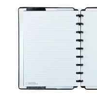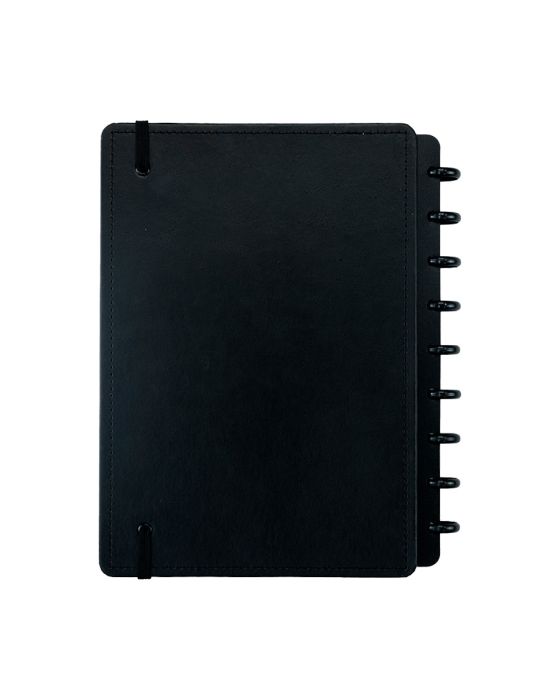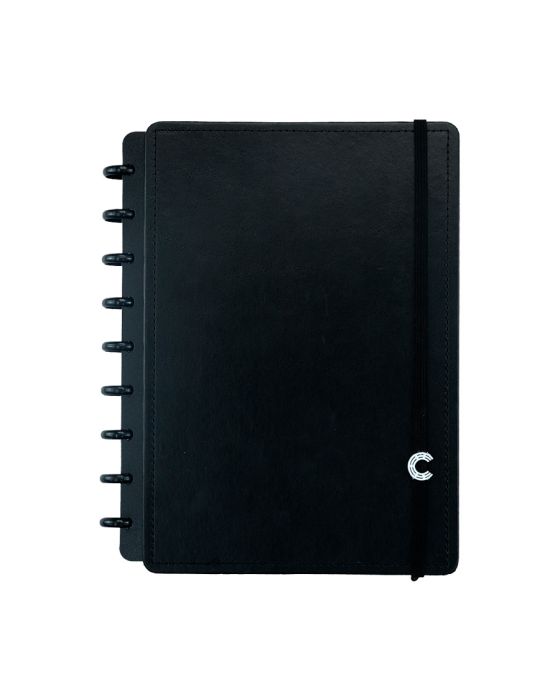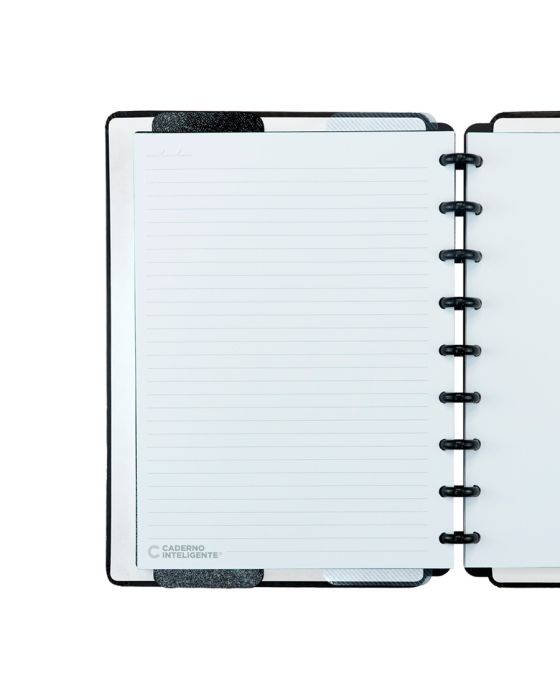 Características:O Caderno Black é uma versão nova do queridíssimo “Black Ecológico”, com acabamento em percalux. O modelo é um luxo que você precisa ter como material para organizar a sua rotina.Com o Caderno Inteligente Black, você tem a opção de tirar e colocar folhas sempre que precisar, adaptando a sua necessidade. Adicione folhas e customize-o com divisórias e acessórios, deixando ele ainda mais seu.Caderno inteligente, só Caderno inteligente ;)Detalhes:- Marca: Caderno Inteligente;- Modelo: Black;- Referência: CIMD3090;- Linha: Cadernos;- Tipo: Médio;- Cor: Preto com detalhes em preto e branco*;- Quantidade folhas: 80 folhas (60 pautadas e 20 lisas);- Capacidade de folhas: Até 140 folhas;- Contém: 1 unidade do produto;- Tamanho: 23mm X 175mm (23 x 17,5cm);- Gramatura: 90g/m2**;- Fechamento: em elástico na cor branca;- Possui uma folha de adesivos decorativos;- Produto customizável, permitindo adicionar alças ou trocar os discos pela cor que preferir;- Produto atóxico;- Produto original.Indústria Brasileira. | Validade: Indeterminada.Acompanha:- Capa e contracapa rígidas;- 01 folha de adesivos;- 01 bolsa plástica;- 01 folha de instrução de uso e manuseio, com refis e acessórios da marca disponíveis no verso;- 01 folha de identificação com calendário no verso;- 04 divisórias com abas para identificação (02 pretas e 02 transparentes);- 80 folhas offset 90g (60 folhas pautadas e 20 folhas lisas brancas para impressão);- 01 suporte com elástico para 01 caneta ou 01 lápis e discos M + elástico.Instruções de manuseio:- Segure a folha com os dedos próximos aos discos e puxe-a suavemente de cima para baixo;- Nunca puxe as folhas pela lateral, isso pode danificá-las e prejudicar o encaixe posterior;- Para recolocar uma folha, posicione-a sobre os discos e encaixe-a pressionando com os dedos;- Cada tamanho de disco comporta uma quantidade máxima de itens. Respeite esse limite para não ter problemas com folhas “se soltando”.Composição:- Tecido, Celulose, ABS, PP, Látex, Poliéster e Aço.Medidas:- Dimensões do produto: 25,5 x 20,2 x 2,1cm (CxLxA);- Peso: 551g.* Por se tratar de um produto artesanal, a tonalidade pode variar;** Considerando produtos e refis da marca Caderno Inteligente.ATENÇÃO! NÃO RECOMENDÁVEL PARA CRIANÇAS DE ATÉ 3 (TRÊS) ANOS POR CONTER PARTE(S) PEQUENA(S) QUE PODEM SER ENGOLIDA(S) OU ASPIRADA(S). * As especificações podem ser alteradas sem aviso prévio ** Imagem meramente ilustrativa.