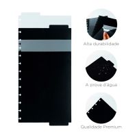 Características:A beleza da cor Azul com a elegância do prateado, desenvolvido e calculado a partir de muitas pesquisas, resultou no caderno infinito Deep Blue, perfeito para anotar tudo o que você precisa e não esquecer de nada - reuniões, tarefas, entregas e compromissos, absolutamente tudo!Caderno inteligente, só Caderno inteligente ;)Detalhes:- Marca: Caderno Inteligente;- Modelo: Deep Blue;- Referência: CIGD4313;- Linha: Cadernos;- Cor: Azul com detalhes em branco*;- Quantidade folhas: 80 folhas (60 pautadas e 20 lisas);- Capacidade de folhas: Até 140 folhas;- Contém: 1 unidade do produto;- Tamanho: 288mm X 217mm (28,8 x 21,7cm);- Gramatura: 90g/m2**;- Fechamento: em elástico na cor branco;- Possui uma folha de adesivos decorativos;- Produto customizável, permitindo adicionar alças ou trocar os discos pela cor que preferir;- Produto atóxico;- Produto original.Indústria Brasileira. | Validade: Indeterminada.Acompanha:- Capa e contracapa rígidas;- 01 bolsa plástica; - 01 folha de instrução de uso e manuseio, com refis e acessórios da marca disponíveis no verso;- 01 folha de identificação com calendário no verso;- 04 divisórias com abas para identificação (02 pretas e 02 transparentes);- 80 folhas offset 90g (60 folhas pautadas e 20 folhas lisas brancas para impressão);- 01 suporte com elástico para 01 caneta ou 01 lápis e discos M + elástico.Instruções de manuseio:- Segure a folha com os dedos próximos aos discos e puxe-a suavemente de cima para baixo;- Nunca puxe as folhas pela lateral, isso pode danificá-las e prejudicar o encaixe posterior;- Para recolocar uma folha, posicione-a sobre os discos e encaixe-a pressionando com os dedos;- Cada tamanho de disco comporta uma quantidade máxima de itens. Respeite esse limite para não ter problemas com folhas “se soltando”.Composição:- Tecido, Celulose, ABS, PP, Látex, Poliéster e Aço.Medidas:- Dimensões do produto: 28,8 x 22,5 x 2,3cm (CxLxA);- Peso: 551g.* Por se tratar de um produto artesanal, a tonalidade pode variar;** Considerando produtos e refis da marca Caderno Inteligente.ATENÇÃO! NÃO RECOMENDÁVEL PARA CRIANÇAS DE ATÉ 3 (TRÊS) ANOS POR CONTER PARTE(S) PEQUENA(S) QUE PODEM SER ENGOLIDA(S) OU ASPIRADA(S). * As especificações podem ser alteradas sem aviso prévio ** Imagem meramente ilustrativa.