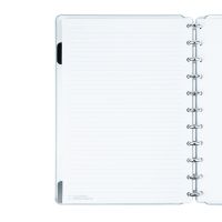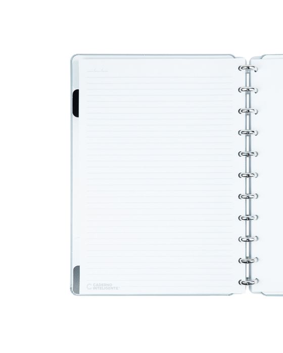 Características:A beleza da cor cinza com a elegância do prateado, desenvolvido e calculado a partir de muitas pesquisas, resultou no caderno infinito Glacial, perfeito para anotar tudo o que você precisa e não esquecer de nada - reuniões, tarefas, entregas e compromissos, absolutamente tudo!Caderno inteligente, só Caderno inteligente ;)Detalhes:- Marca: Caderno Inteligente;- Modelo: Glacial;- Referência: CIGD4340;- Linha: Cadernos;- Cor: Cinza com detalhes em branco e prata*;- Quantidade folhas: 80 folhas (60 pautadas e 20 lisas);- Capacidade de folhas: Até 140 folhas;- Contém: 1 unidade do produto;- Tamanho: 288mm X 217mm (28,8 x 21,7cm);- Gramatura: 90g/m2**;- Fechamento: em elástico na cor cinza;- Possui uma folha de adesivos decorativos;- Produto customizável, permitindo adicionar alças ou trocar os discos pela cor que preferir;- Produto atóxico;- Produto original.Indústria Brasileira. | Validade: Indeterminada.Acompanha:- Capa e contracapa rígidas;- 01 bolsa plástica; - 01 folha de instrução de uso e manuseio, com refis e acessórios da marca disponíveis no verso;- 01 folha de identificação com calendário no verso;- 04 divisórias com abas para identificação (02 pretas e 02 transparentes);- 80 folhas offset 90g (60 folhas pautadas e 20 folhas lisas brancas para impressão);- 01 suporte com elástico para 01 caneta ou 01 lápis e discos M + elástico.Instruções de manuseio:- Segure a folha com os dedos próximos aos discos e puxe-a suavemente de cima para baixo;- Nunca puxe as folhas pela lateral, isso pode danificá-las e prejudicar o encaixe posterior;- Para recolocar uma folha, posicione-a sobre os discos e encaixe-a pressionando com os dedos;- Cada tamanho de disco comporta uma quantidade máxima de itens. Respeite esse limite para não ter problemas com folhas “se soltando”.Composição:- Tecido, Celulose, ABS, PP, Látex, Poliéster e Aço.Medidas:- Dimensões do produto: 28,8 x 22,5 x 2,3cm (CxLxA);- Peso: 551g.* Por se tratar de um produto artesanal, a tonalidade pode variar;** Considerando produtos e refis da marca Caderno Inteligente.ATENÇÃO! NÃO RECOMENDÁVEL PARA CRIANÇAS DE ATÉ 3 (TRÊS) ANOS POR CONTER PARTE(S) PEQUENA(S) QUE PODEM SER ENGOLIDA(S) OU ASPIRADA(S). * As especificações podem ser alteradas sem aviso prévio ** Imagem meramente ilustrativa.