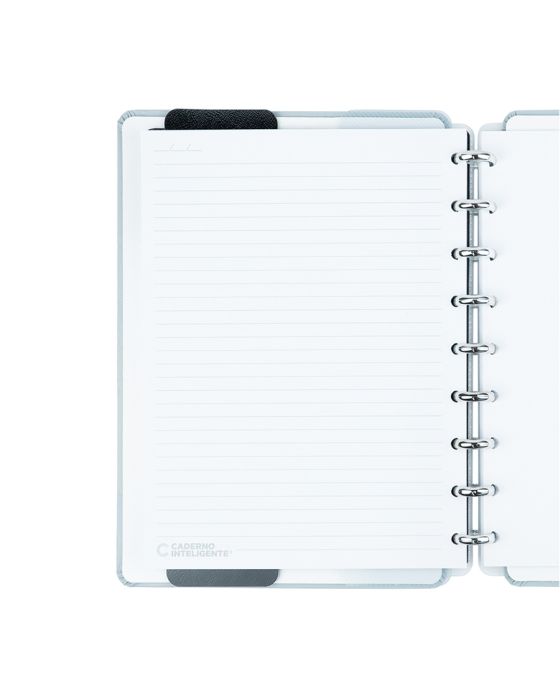 Características:A beleza da cor cinza com a elegância do prateado, desenvolvido e calculado a partir de muitas pesquisas, resultou no caderno infinito Glacial, perfeito para anotar tudo o que você precisa e não esquecer de nada - reuniões, tarefas, entregas e compromissos, absolutamente tudo!Caderno inteligente, só Caderno inteligente ;)Detalhes:- Marca: Caderno Inteligente;- Modelo: Glacial;- Referência: CIMD3340;- Linha: Cadernos;- Tipo: Médio;- Cor: Cinza com detalhes em branco e prata*;- Quantidade folhas: 80 folhas (60 pautadas e 20 lisas);- Capacidade de folhas: Até 140 folhas;- Contém: 1 unidade do produto;- Tamanho: 23mm X 175mm (23 x 17,5cm);- Gramatura: 90g/m2**;- Fechamento: em elástico na cor cinza;- Possui uma folha de adesivos decorativos;- Produto customizável, permitindo adicionar alças ou trocar os discos pela cor que preferir;- Produto atóxico;- Produto original.Indústria Brasileira. | Validade: Indeterminada.Acompanha:- Capa e contracapa rígidas;- 01 folha de adesivos;- 01 bolsa plástica;- 01 folha de instrução de uso e manuseio, com refis e acessórios da marca disponíveis no verso;- 01 folha de identificação com calendário no verso;- 04 divisórias com abas para identificação (02 pretas e 02 transparentes);- 80 folhas offset 90g (60 folhas pautadas e 20 folhas lisas brancas para impressão);- 01 suporte com elástico para 01 caneta ou 01 lápis e discos M + elástico.Instruções de manuseio:- Segure a folha com os dedos próximos aos discos e puxe-a suavemente de cima para baixo;- Nunca puxe as folhas pela lateral, isso pode danificá-las e prejudicar o encaixe posterior;- Para recolocar uma folha, posicione-a sobre os discos e encaixe-a pressionando com os dedos;- Cada tamanho de disco comporta uma quantidade máxima de itens. Respeite esse limite para não ter problemas com folhas “se soltando”.Composição:- Tecido, Celulose, ABS, PP, Látex, Poliéster e Aço.Medidas:- Dimensões do produto: 25,5 x 20,2 x 2,1cm (CxLxA);- Peso: 551g.* Por se tratar de um produto artesanal, a tonalidade pode variar;** Considerando produtos e refis da marca Caderno Inteligente.ATENÇÃO! NÃO RECOMENDÁVEL PARA CRIANÇAS DE ATÉ 3 (TRÊS) ANOS POR CONTER PARTE(S) PEQUENA(S) QUE PODEM SER ENGOLIDA(S) OU ASPIRADA(S). * As especificações podem ser alteradas sem aviso prévio ** Imagem meramente ilustrativa.