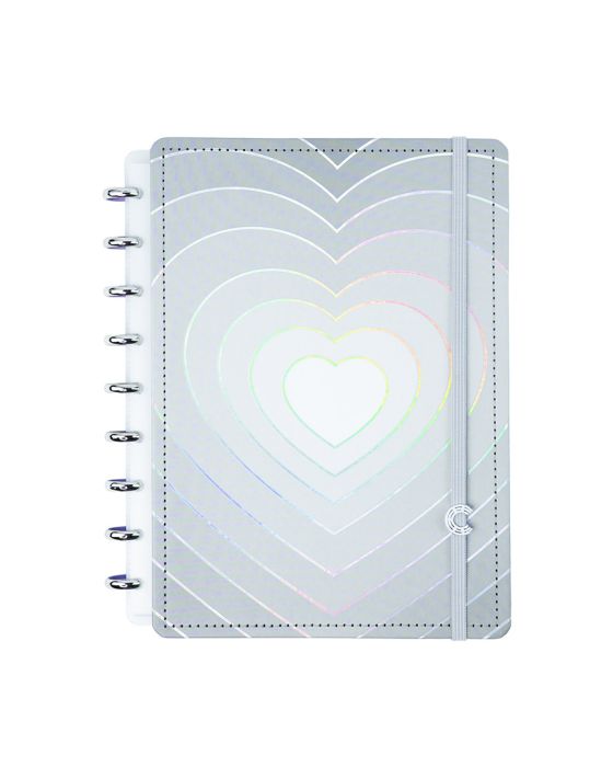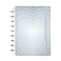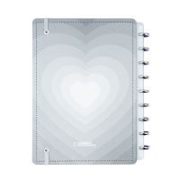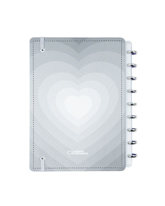 Características:Apaixone-se e inspire-se com este caderno incrivelmente personalizável cinza com um brilho super sofisticado em formato de coração com hotstamping holográfico. Capture as memórias, objetivos e sonhos tudo em um único lugar! Se apaixone!Com discos prateados e um interior roxo vibrante, nosso produto combina sofisticação e estilo em um só lugar. Descubra a beleza das combinações.Caderno inteligente, só Caderno inteligente ;)Detalhes:- Marca: Caderno Inteligente;- Modelo: Grey Love;- Referência: CIMD3305;- Linha: Cadernos;- Tipo: Médio;- Cor: Cinza com detalhes metalizados, Prata e detalhes lilás*;- Quantidade folhas: 80 folhas (60 pautadas e 20 lisas);- Capacidade de folhas: Até 140 folhas;- Contém: 1 unidade do produto;- Tamanho: 23mm X 175mm (23 x 17,5cm);- Gramatura: 90g/m2**;- Fechamento: em elástico na cor cinza;- Possui uma folha de adesivos decorativos;- Produto customizável, permitindo adicionar alças ou trocar os discos pela cor que preferir;- Produto atóxico;- Produto original.Indústria Brasileira. | Validade: Indeterminada.Acompanha:- Capa e contracapa rígidas;- 01 folha de adesivos;- 01 bolsa plástica;- 01 folha de instrução de uso e manuseio, com refis e acessórios da marca disponíveis no verso;- 01 folha de identificação com calendário no verso;- 04 divisórias com abas para identificação (02 pretas e 02 transparentes);- 80 folhas offset 90g (60 folhas pautadas e 20 folhas lisas brancas para impressão);- 01 suporte com elástico para 01 caneta ou 01 lápis e discos M + elástico.Instruções de manuseio:- Segure a folha com os dedos próximos aos discos e puxe-a suavemente de cima para baixo;- Nunca puxe as folhas pela lateral, isso pode danificá-las e prejudicar o encaixe posterior;- Para recolocar uma folha, posicione-a sobre os discos e encaixe-a pressionando com os dedos;- Cada tamanho de disco comporta uma quantidade máxima de itens. Respeite esse limite para não ter problemas com folhas “se soltando”.Composição:- Tecido, Celulose, ABS, PP, Látex, Poliéster e Aço.Medidas:- Dimensões do produto: 25,5 x 20,2 x 2,1cm (CxLxA);- Peso: 551g.* Por se tratar de um produto artesanal, a tonalidade pode variar;** Considerando produtos e refis da marca Caderno Inteligente.ATENÇÃO! NÃO RECOMENDÁVEL PARA CRIANÇAS DE ATÉ 3 (TRÊS) ANOS POR CONTER PARTE(S) PEQUENA(S) QUE PODEM SER ENGOLIDA(S) OU ASPIRADA(S). * As especificações podem ser alteradas sem aviso prévio ** Imagem meramente ilustrativa.